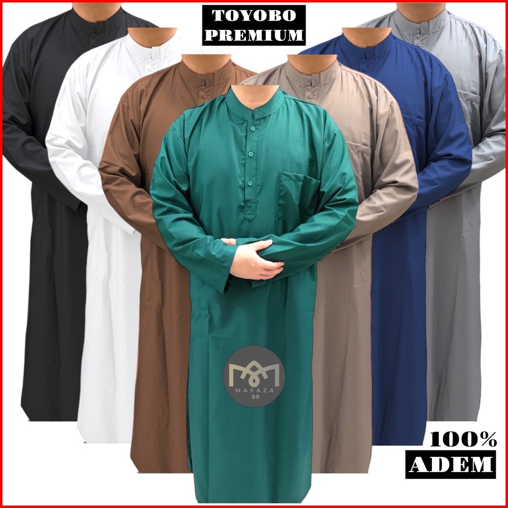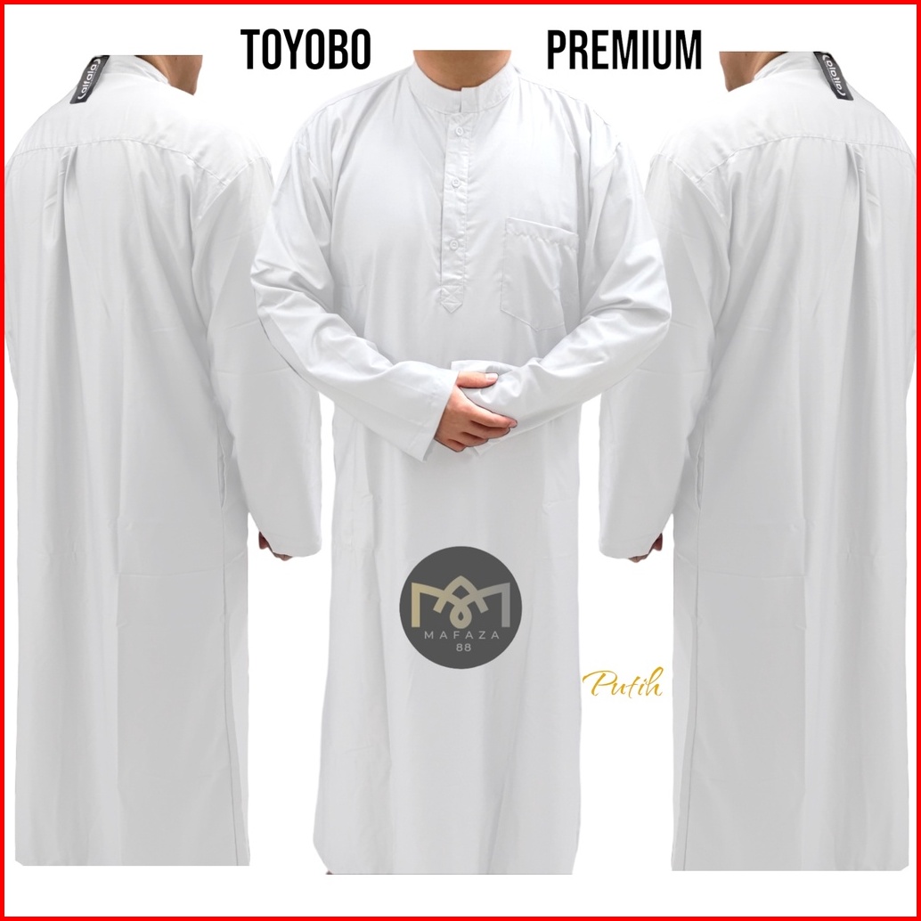 Gamis Jubah Muslim Pria Toyobo Premium Adem Lengan Panjang Polos Sholat Umroh Lebaran Putih