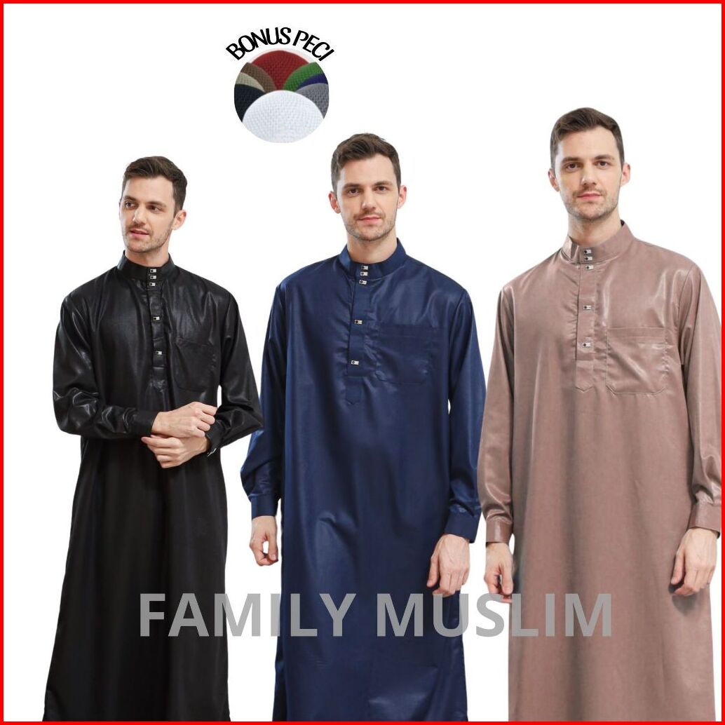 Family Muslim - Jubah Gamis Pria Lengan Panjang Madani Hitam