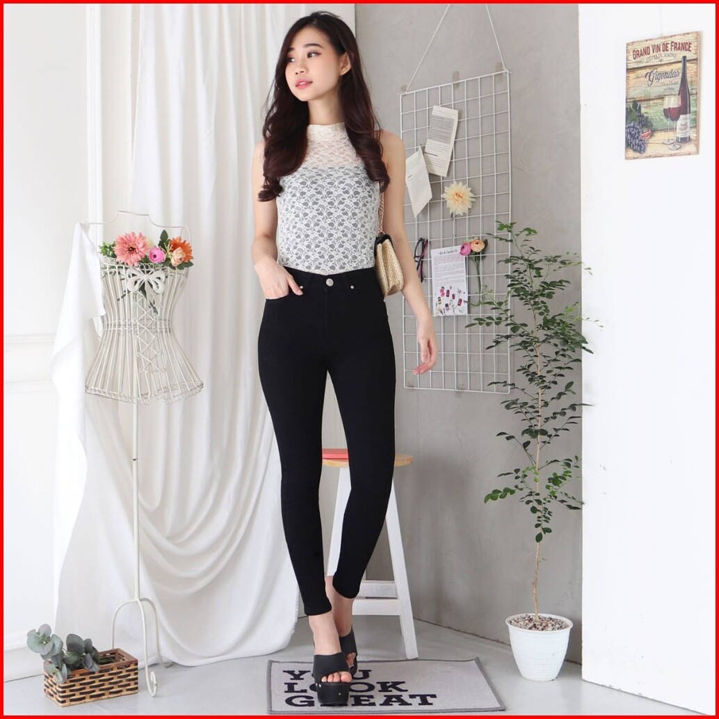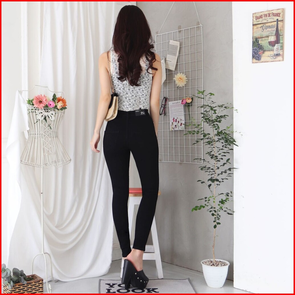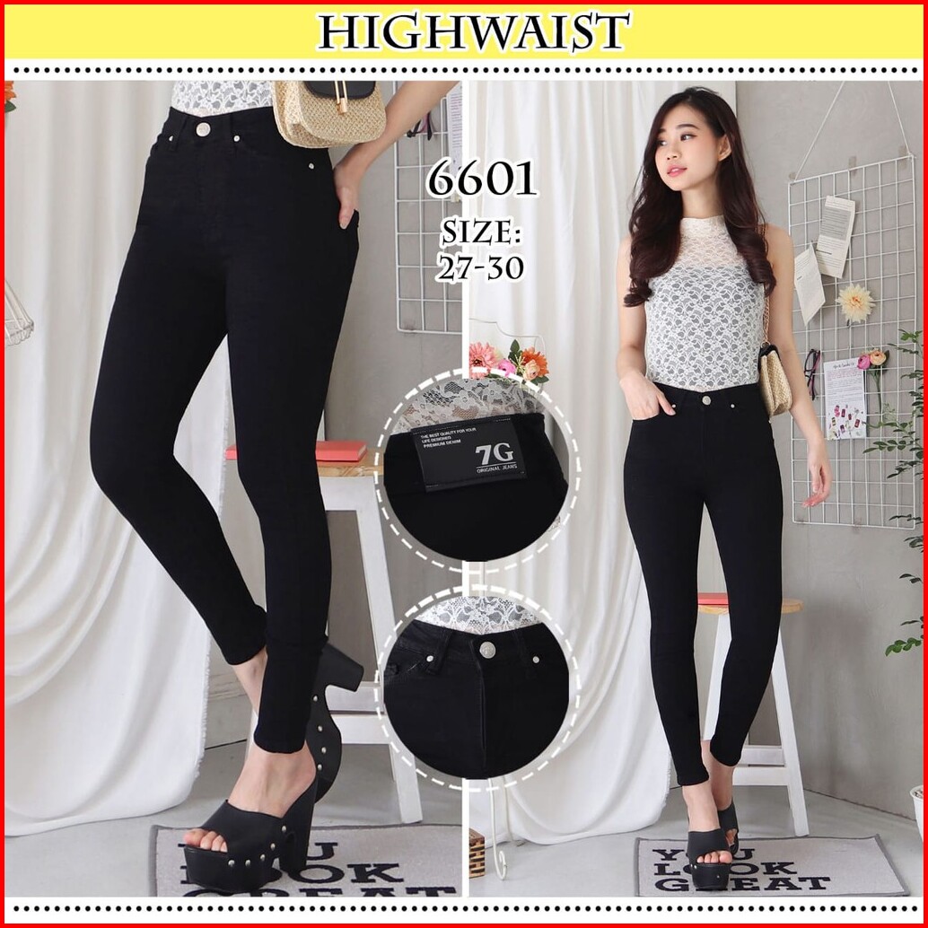 7c-g Celana Jeans Premium Highwaist Hitam Pinggang Tinggi Streacht 27 - 34