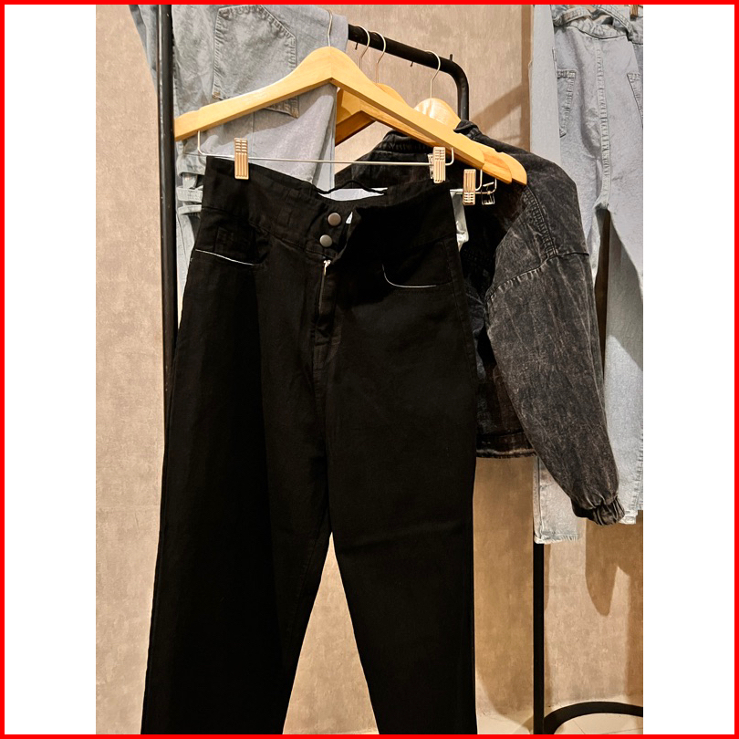 Kissme - Celana Wanita Kulot Jeans Highwaist Panjang Kekinian