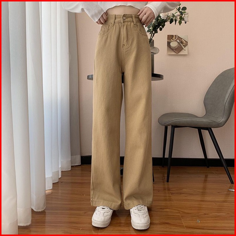 Korean Style Straight Leg Loose Khaki Jeans Korean Style Straight Leg Loose Khaki Jeans