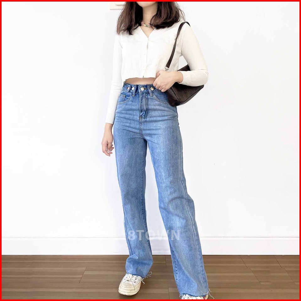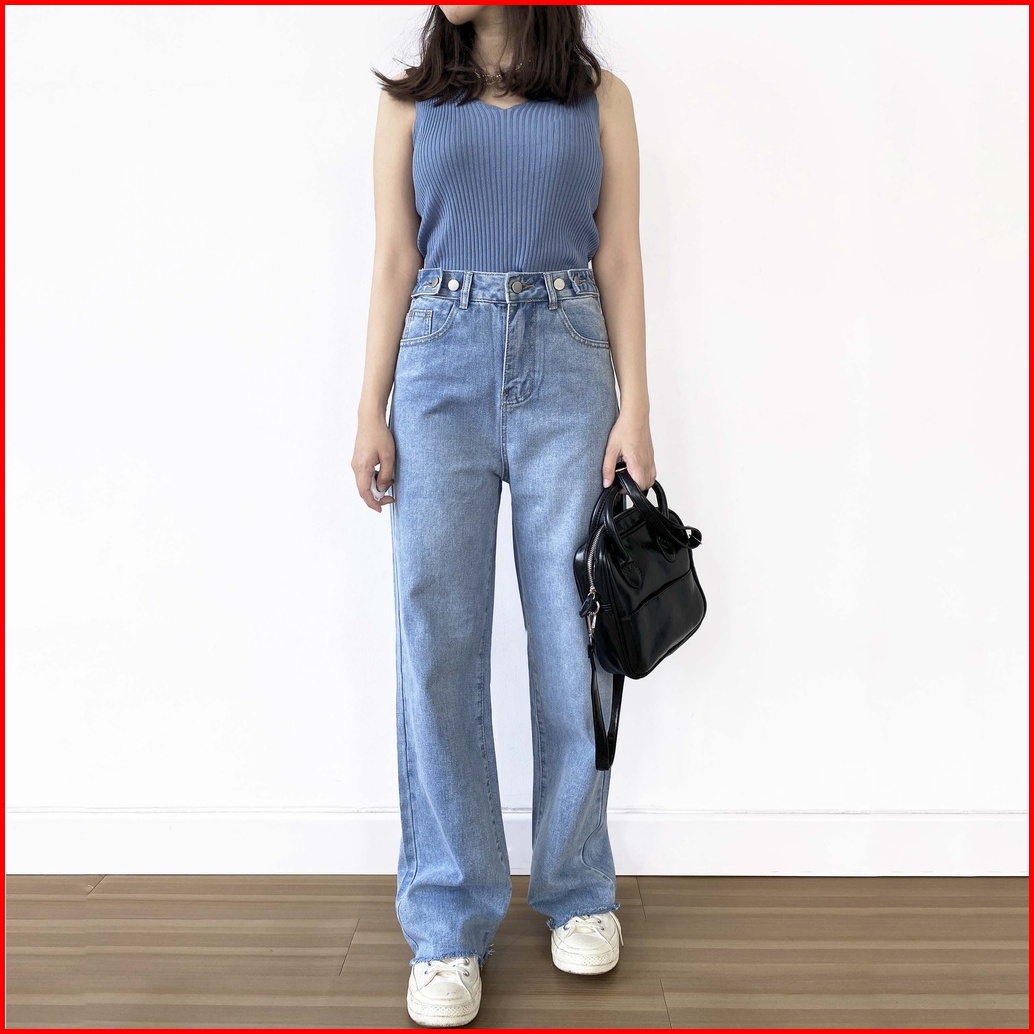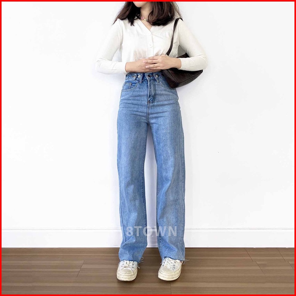 T44 18town Celana Jeans Biru Muda Korea Panjang Model Longgar Baggy Kulot High Waist Bahan Adem