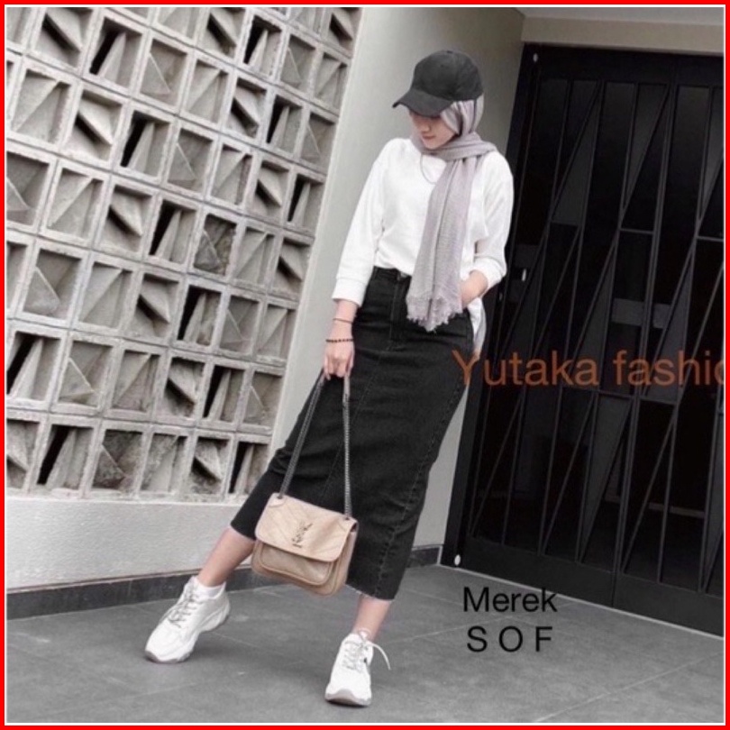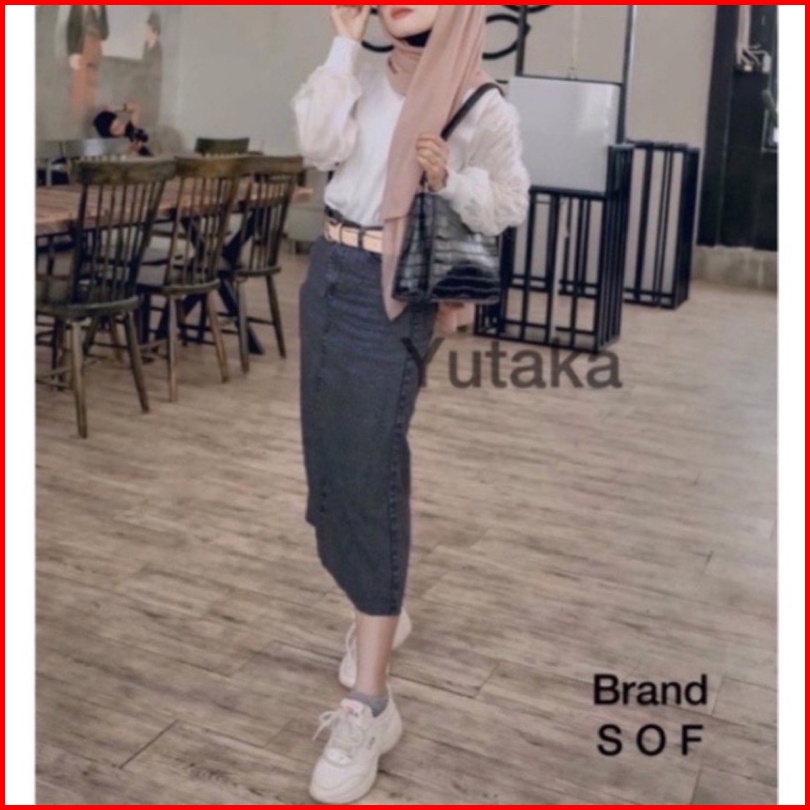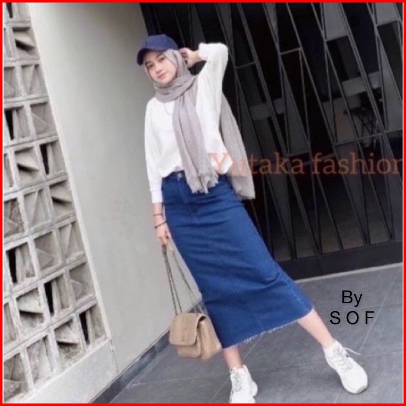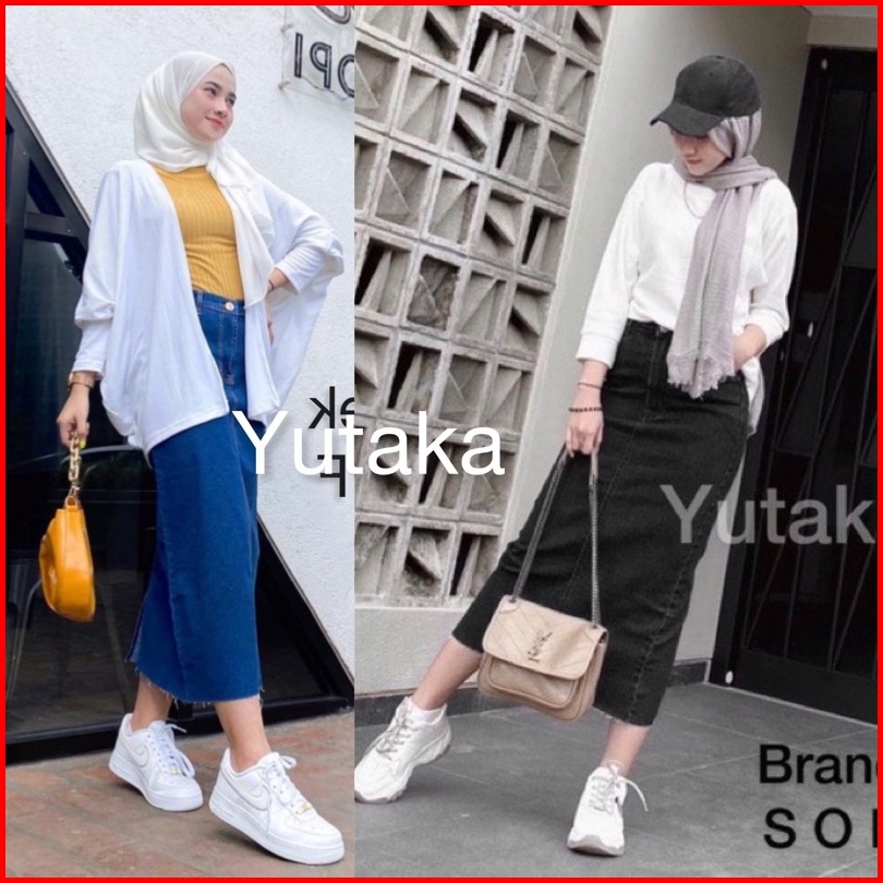Yutaka - Rok Span Unfinished Cut Yuki Skirt Rok Jeans 7 9 Rok Panjang Rok Jeans Rok Ootd Korea
