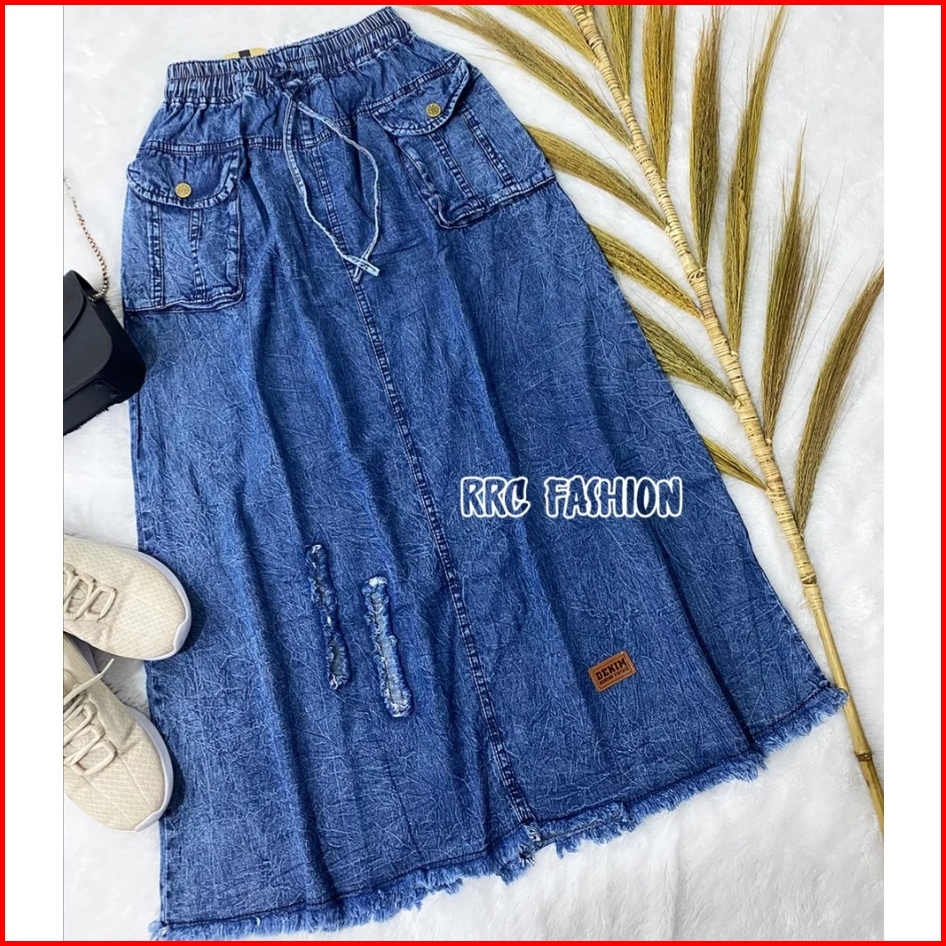 Rok Kimpul Jeans Wanita Dewasa Kantong Depan Best Seller