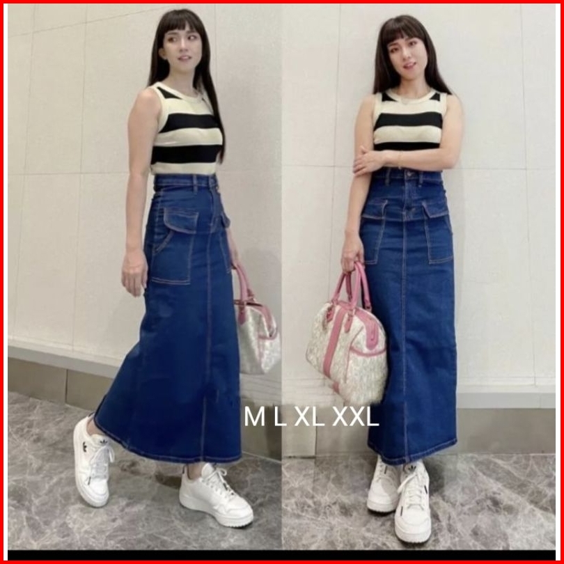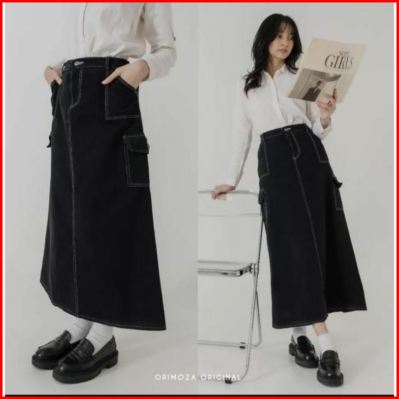 Rok Jeans Cargo Sctret Rok Panjang Bawahan Wanita Kece