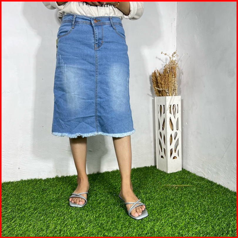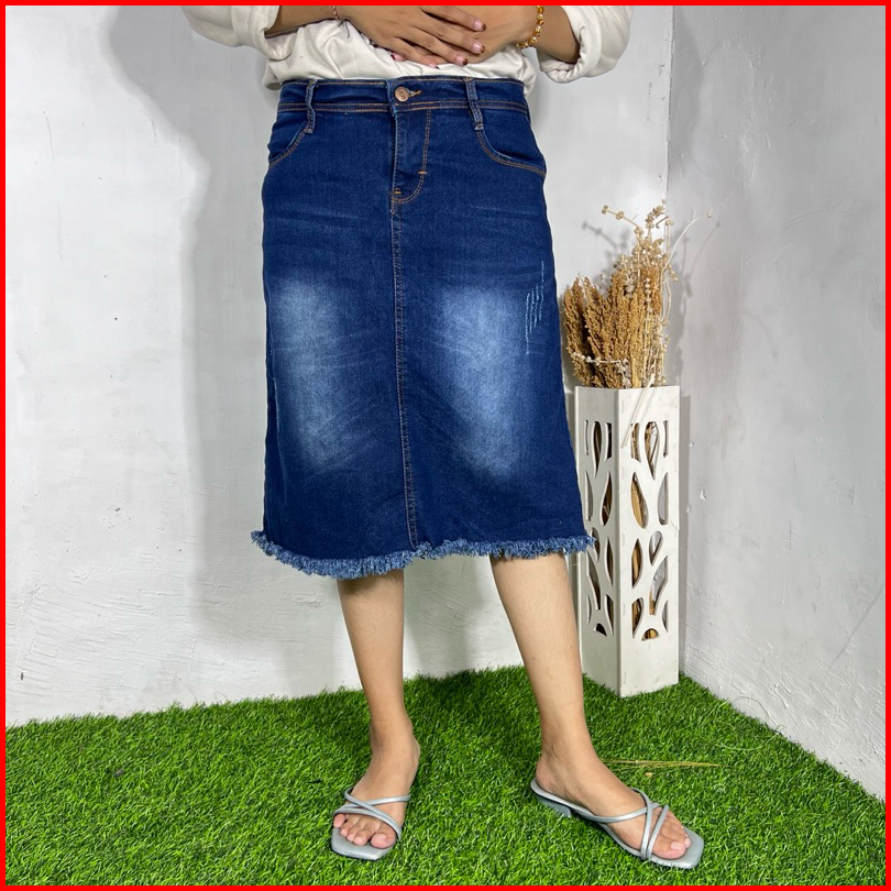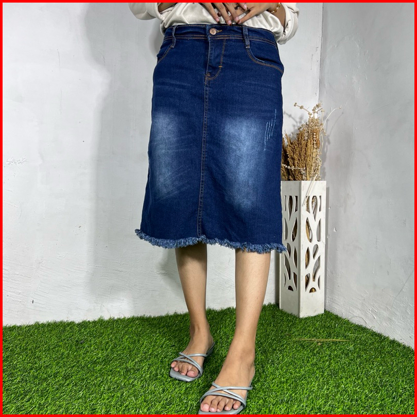 Alesya Skirt Jeans 7 8 Skirt Jeans Stretch Jeans Skirt Stretch 7 8 Melar Rok Jeans Skirt Belah Belakang Rawis Korean Sty