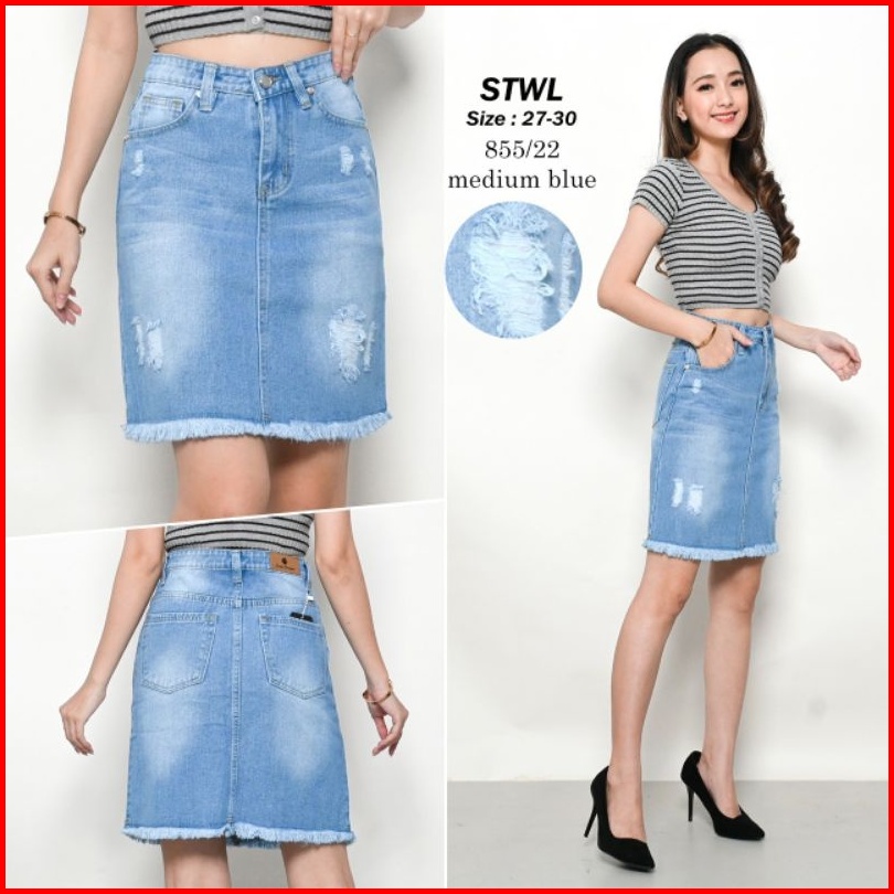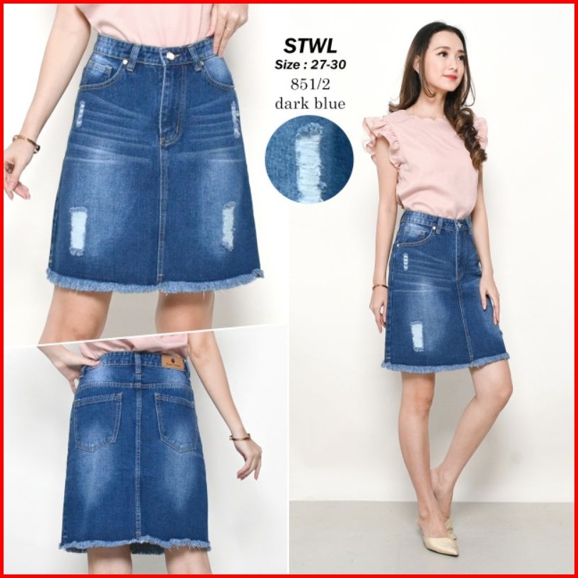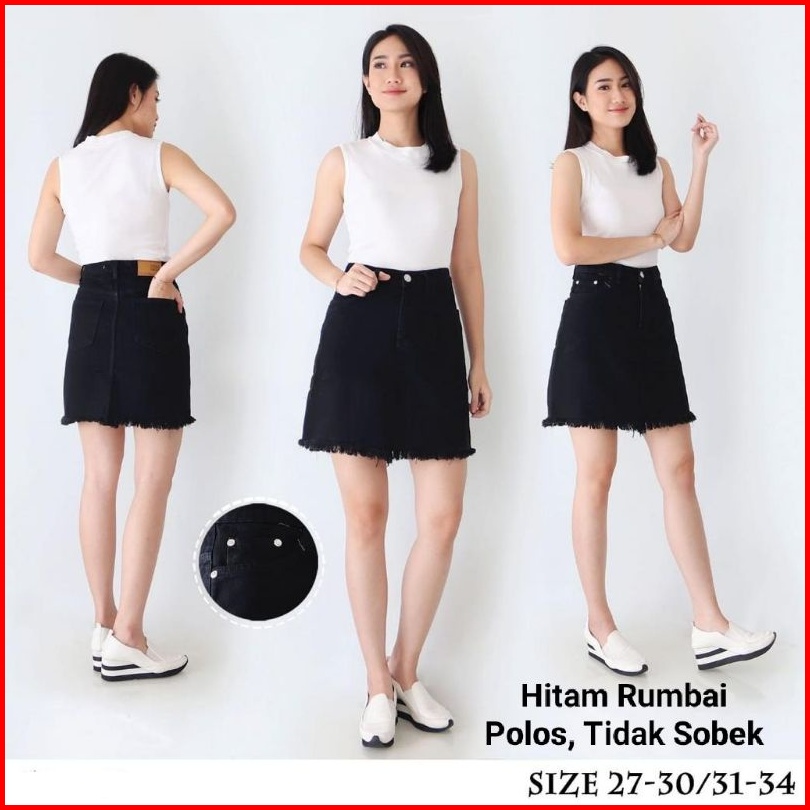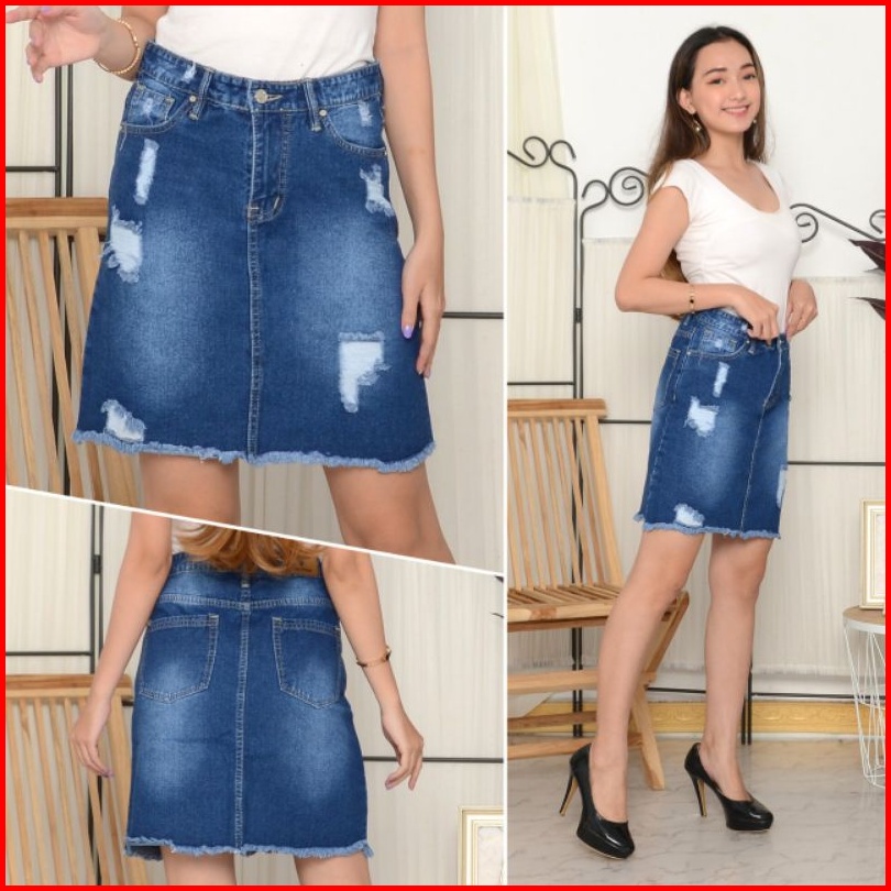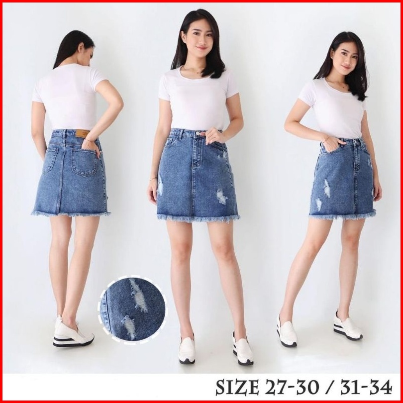 Rok Mini Jeans Pendek Sobek Lapis Furing Rawis 27-34