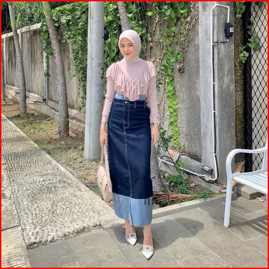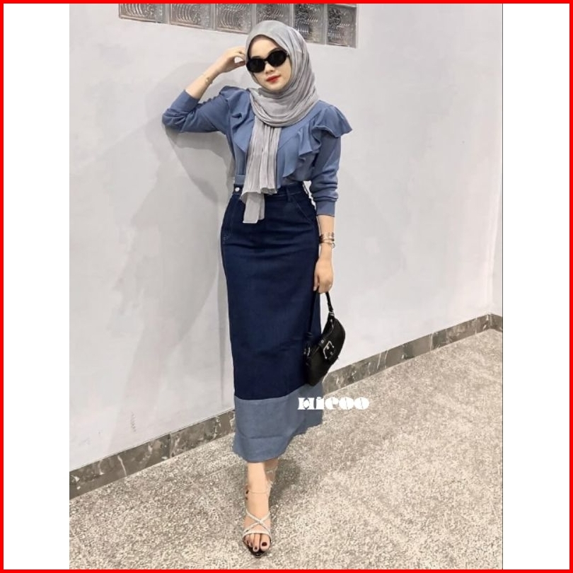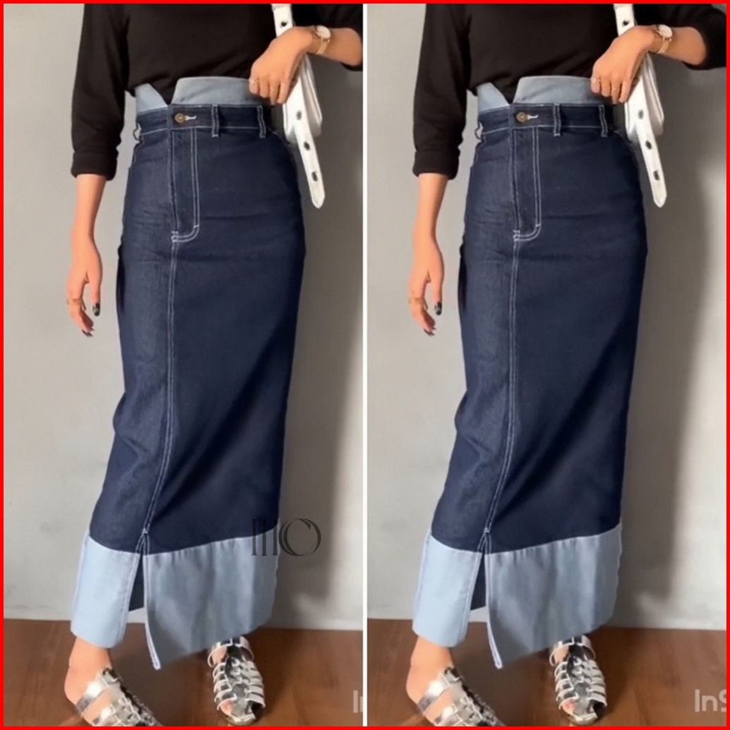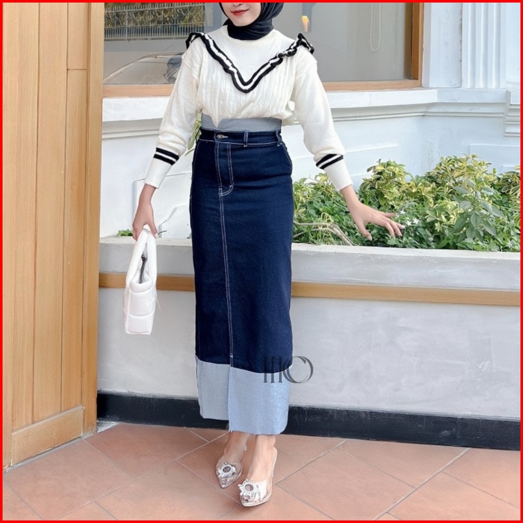 Hicoo Erza Rok Jeans Wanita Two Tone High Waist Casual Kekinian Style