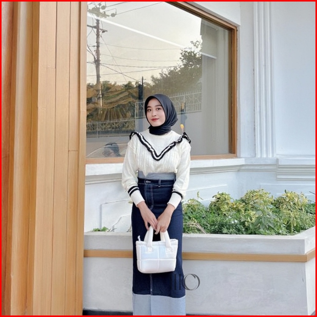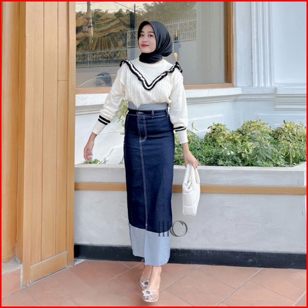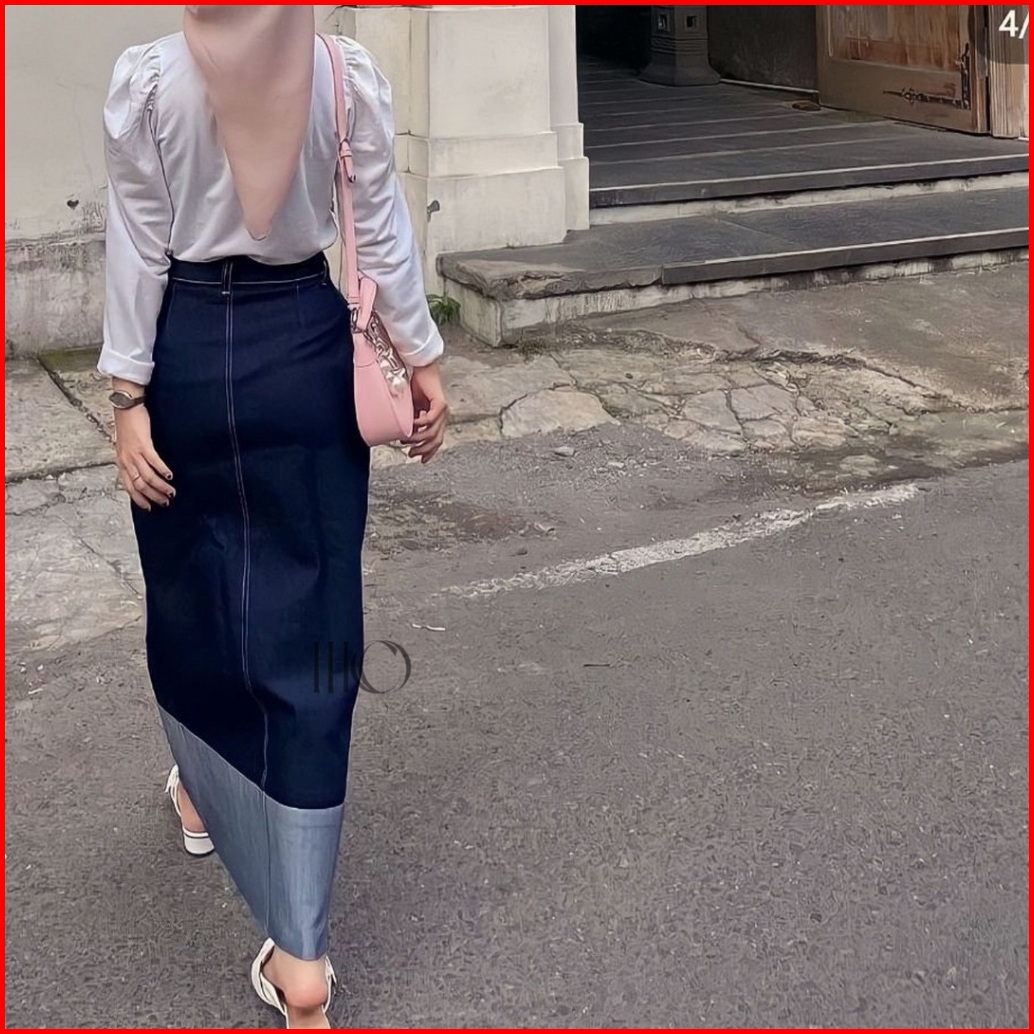 Hicoo Erza Rok Jeans Wanita Two Tone High Waist Casual Kekinian Style