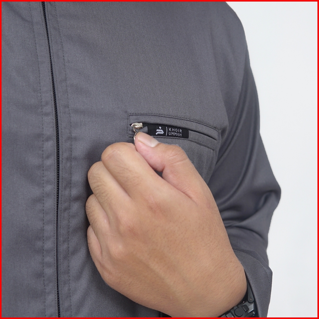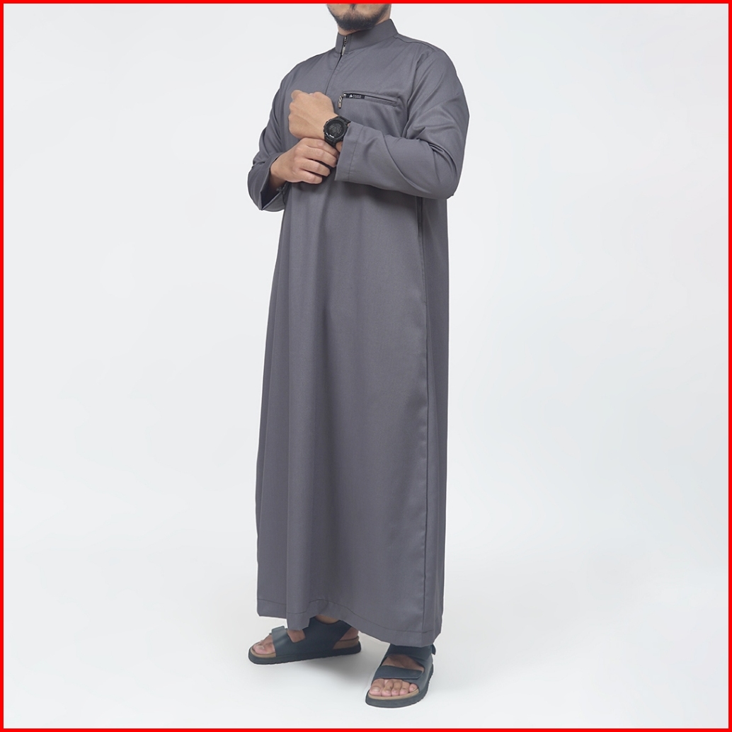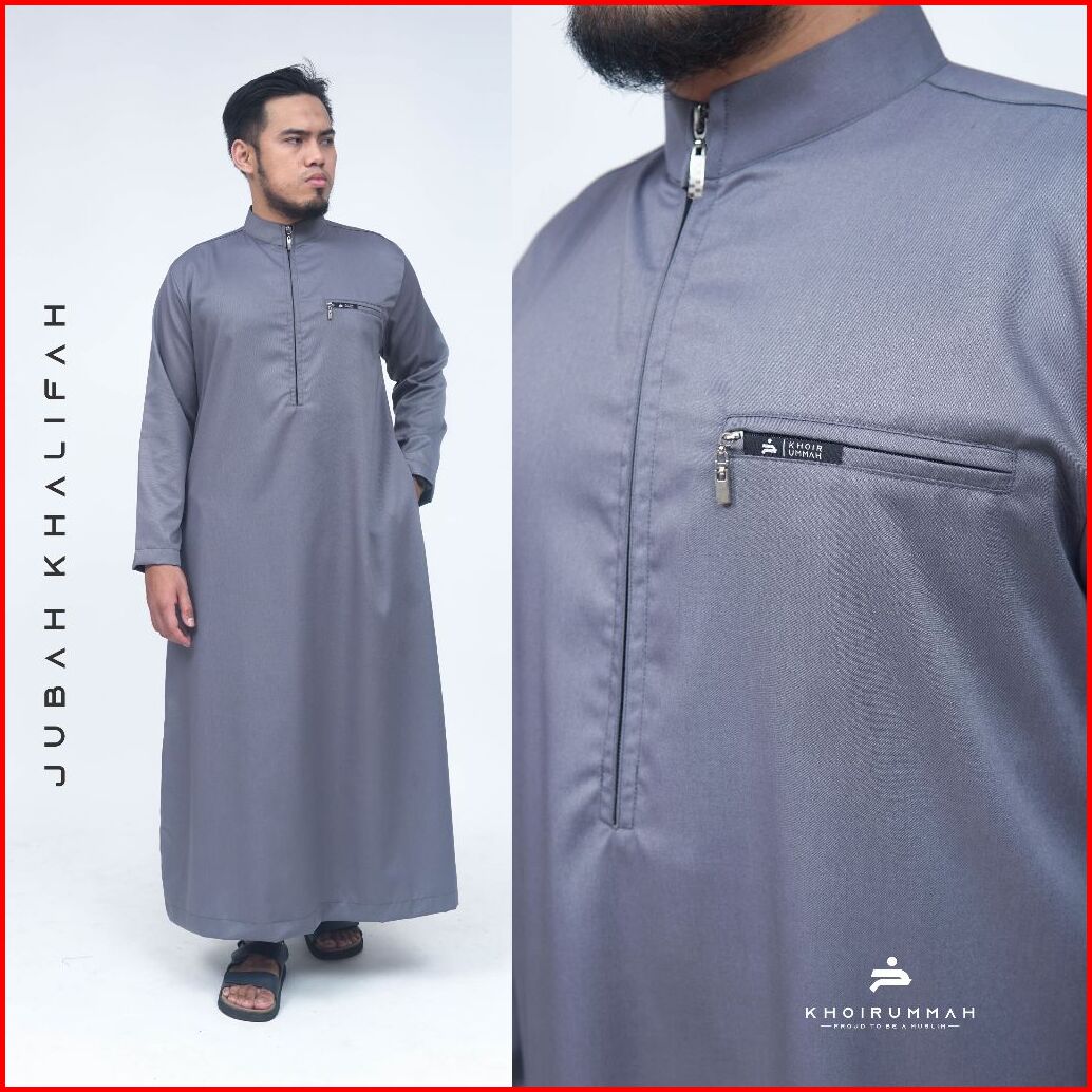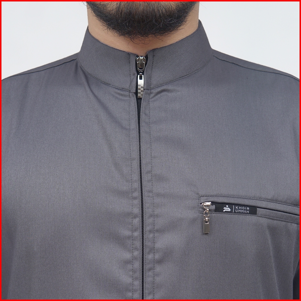 Khoirummah - Jubah Khalifah - Gamis Pria Dewasa Lengan Panjang Half Zipper - Dark Grey