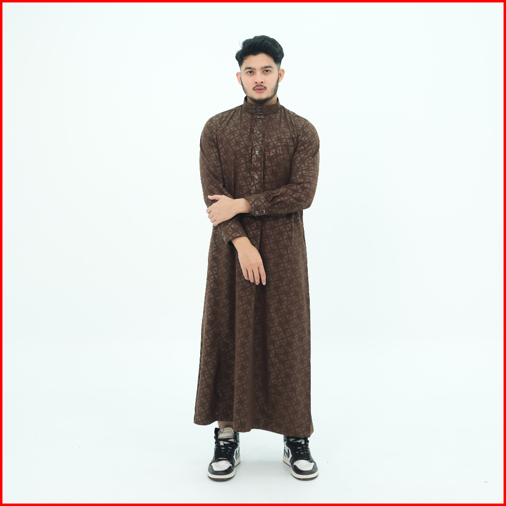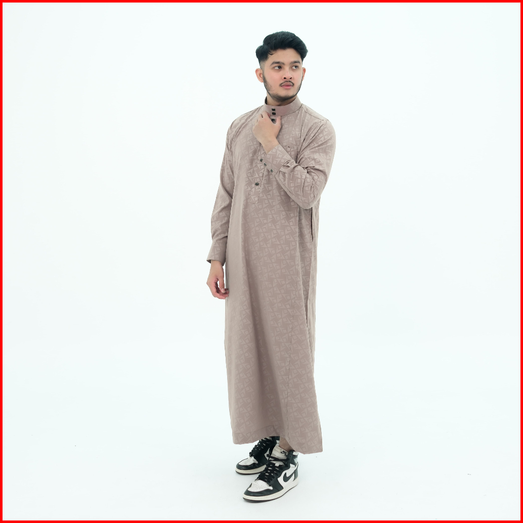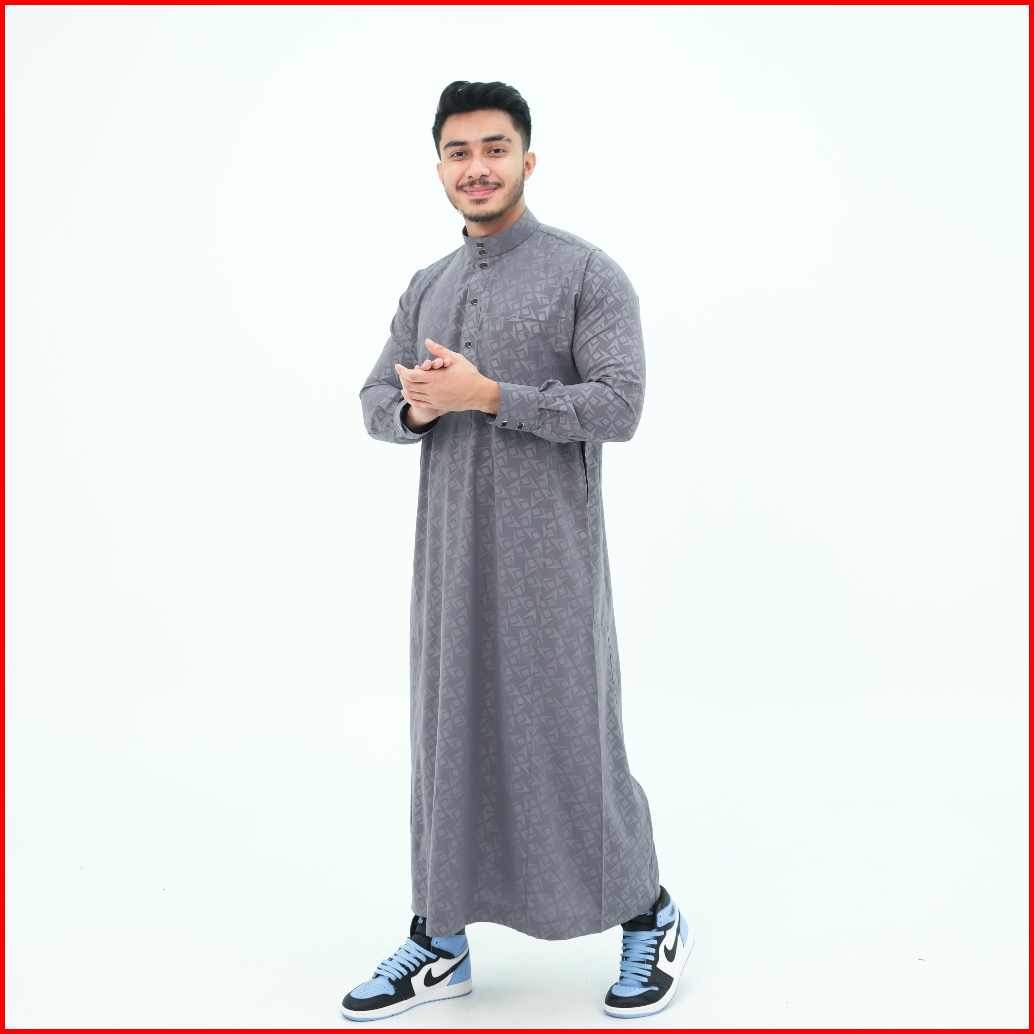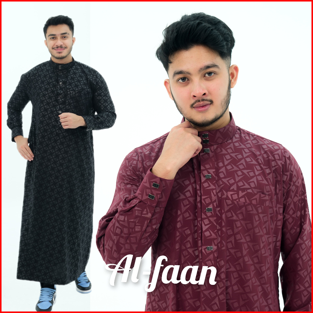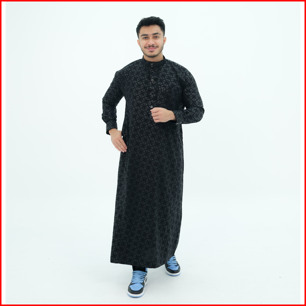 Jubah Pria Gamis Pria Motif Embos Lengan Panjang Manset Kancing Robes Hitam Jubah Pria Muslim Pria Jubbah Alfaan Terbaru