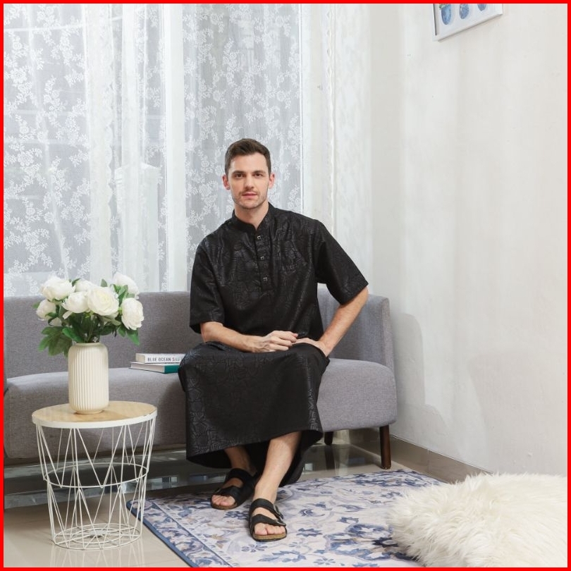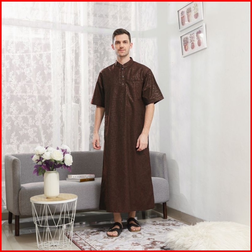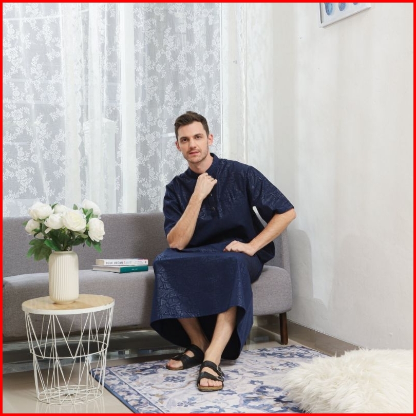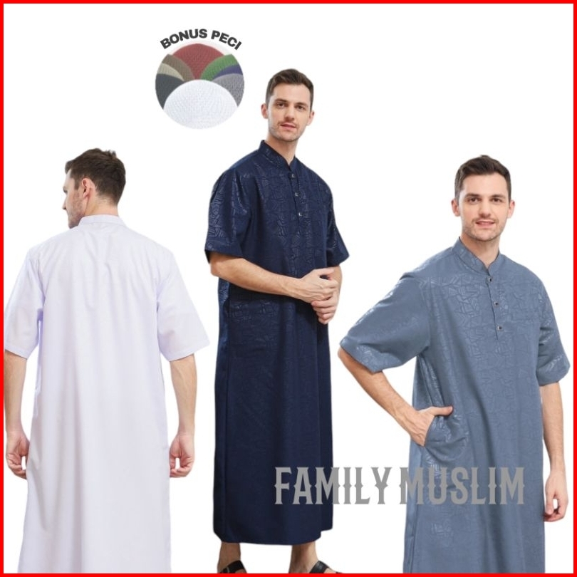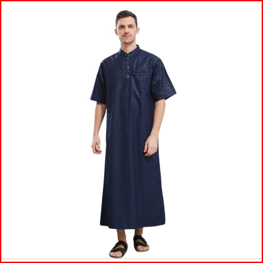 Family Muslim - Jubah Pria Dewasa Lengan Pendek Slimfit Motif Emboss Al-kof Navy