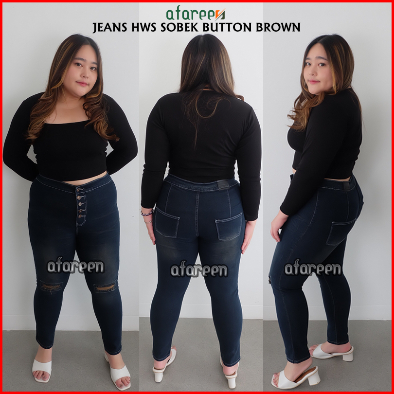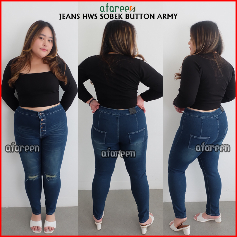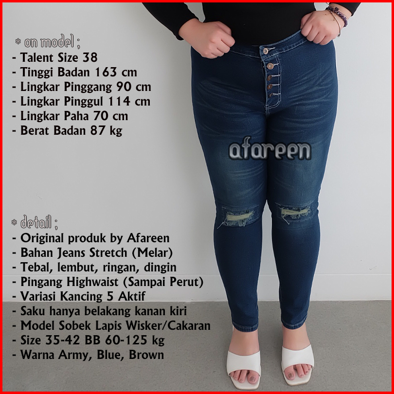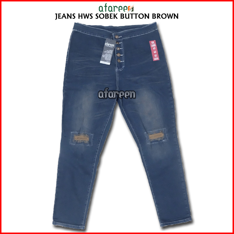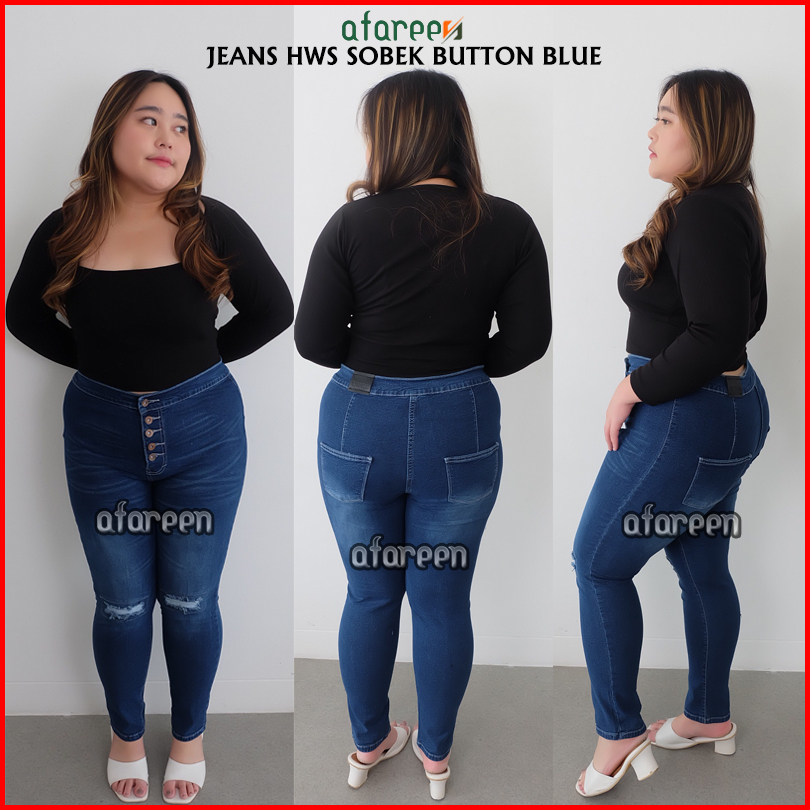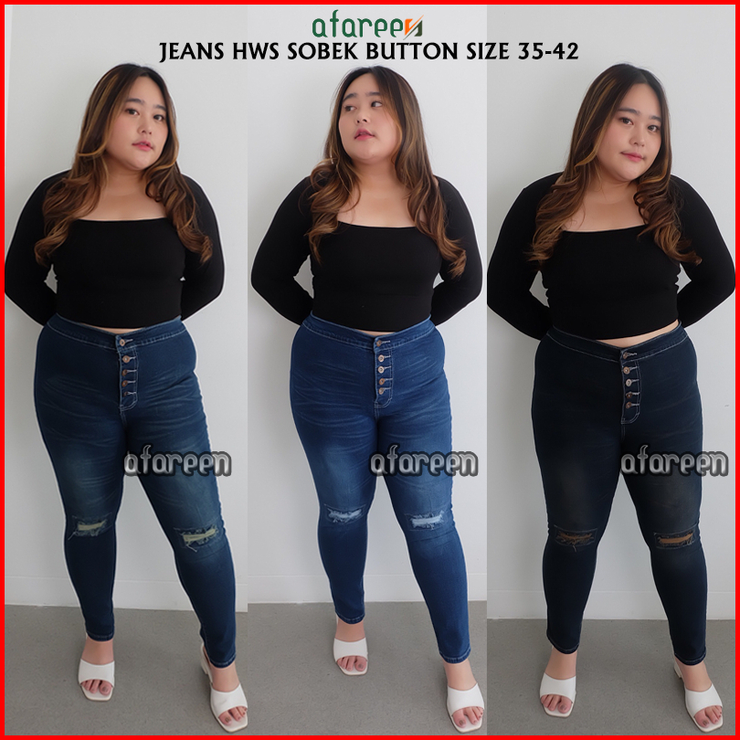 Afareen - Jeans Highwaist Jumbo Button Celana Panjang Jeans Wanita Hws Kancing 5 Plus Size 35-42