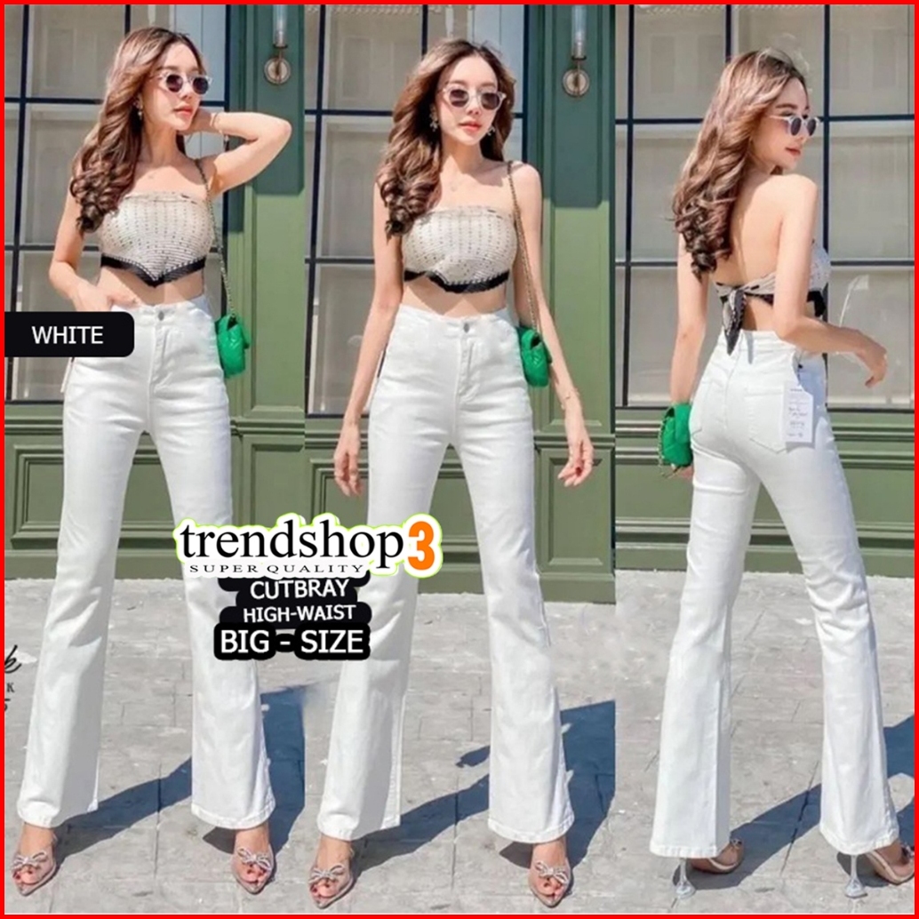 Celana Cutbray Jeans Highwaist Putih Wanita Panjang Kekinian Stretch Melar Pinggang Tinggi