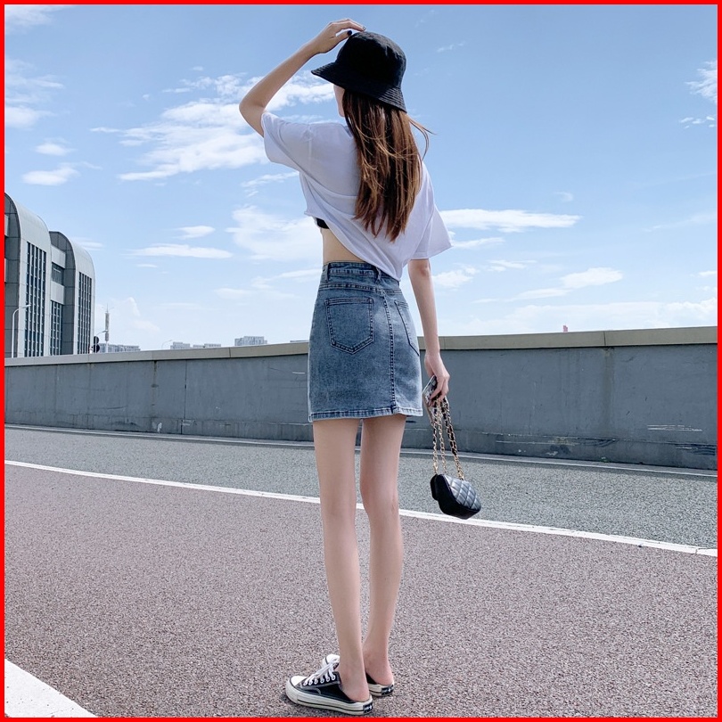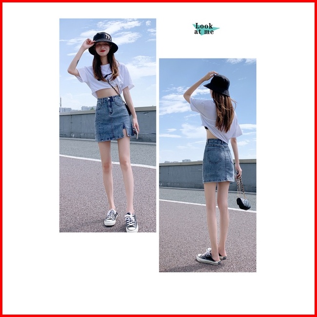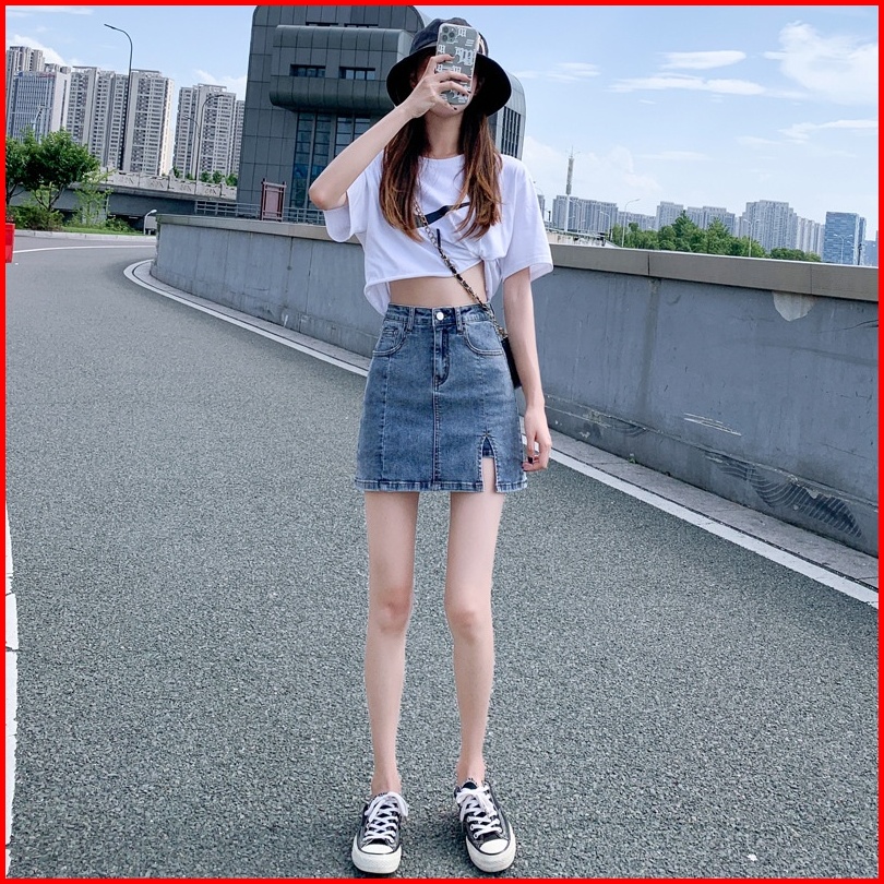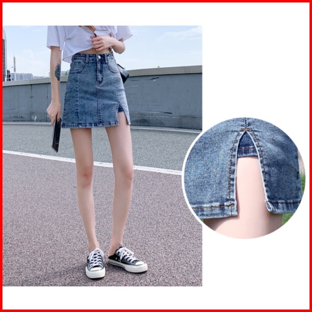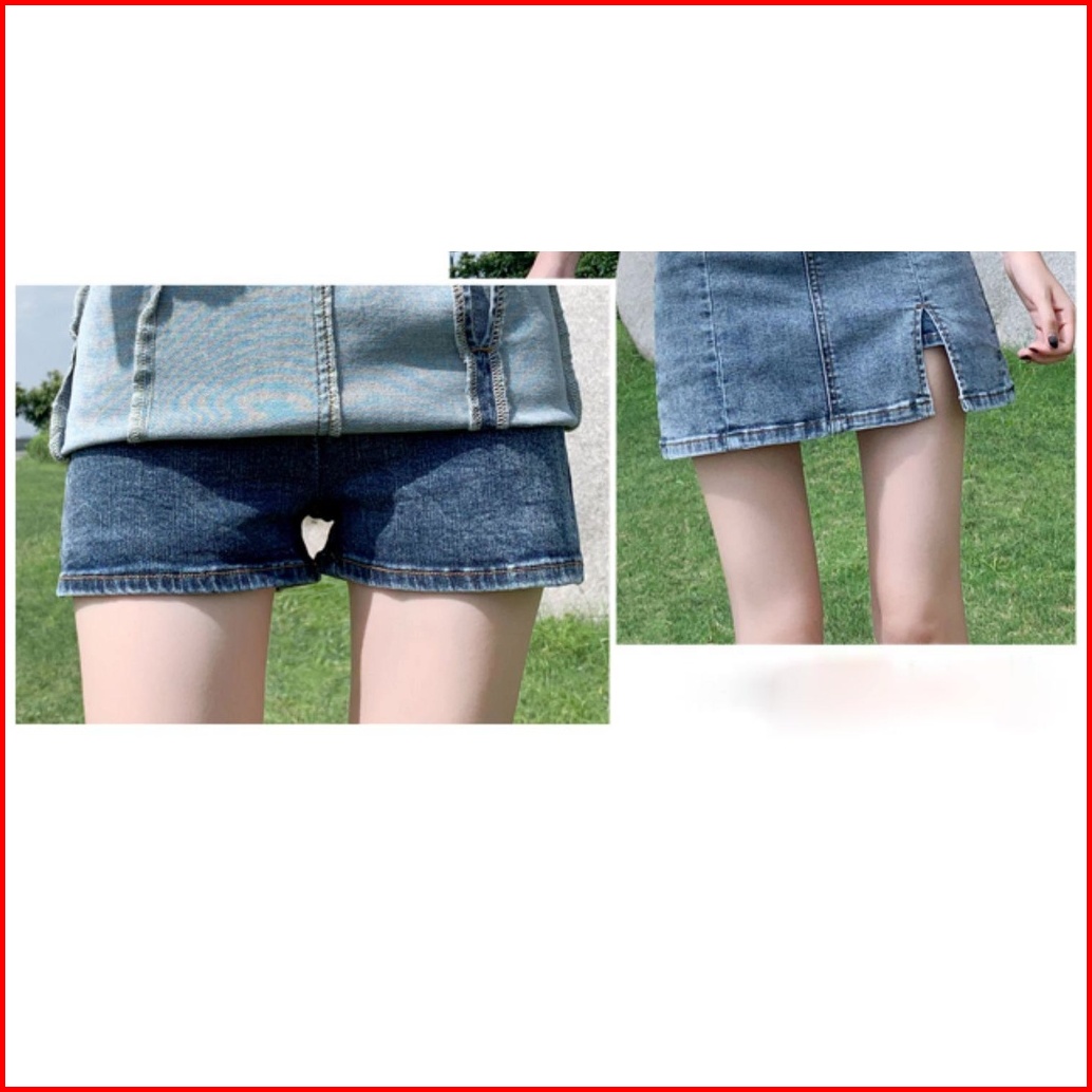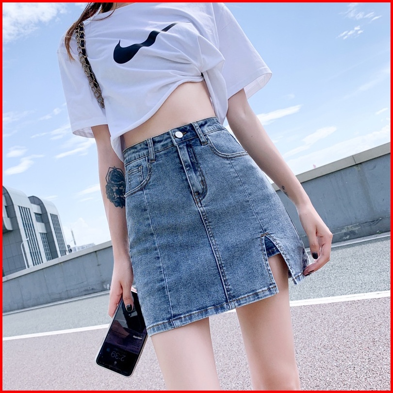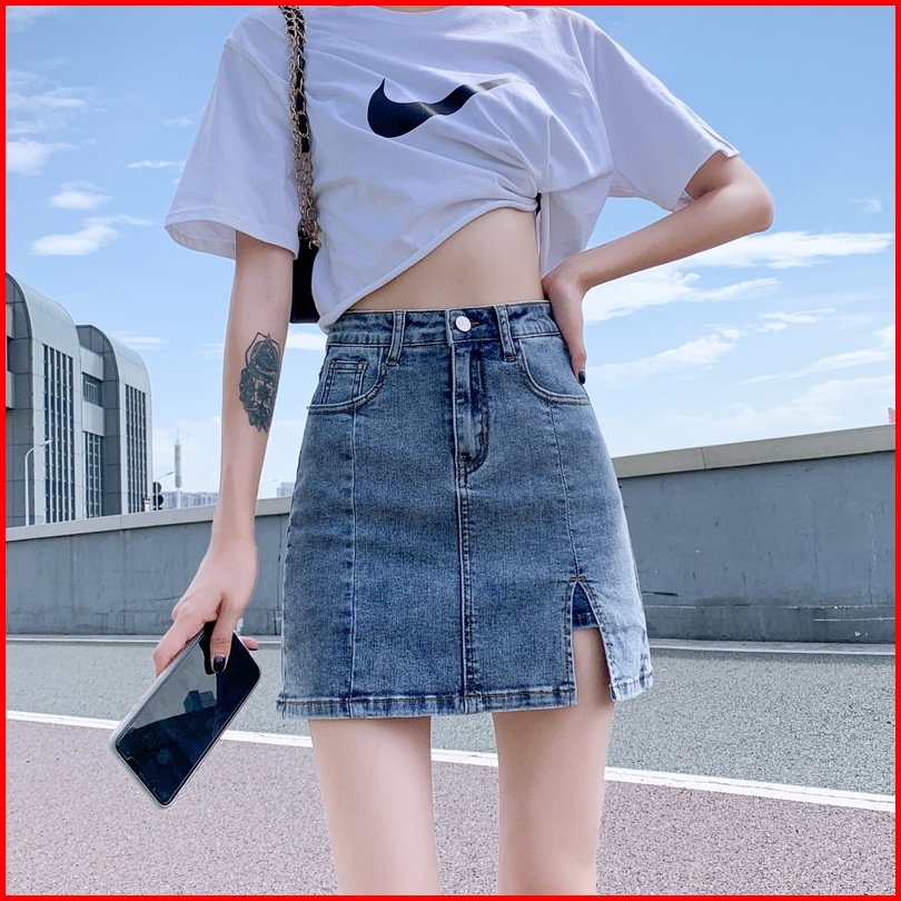 Rok Demin Stretch Jeans Rok Wanita High Waist Anti Eksposur A-line Rok Mini Rok Split Rok Ketat Korean Style Fashion