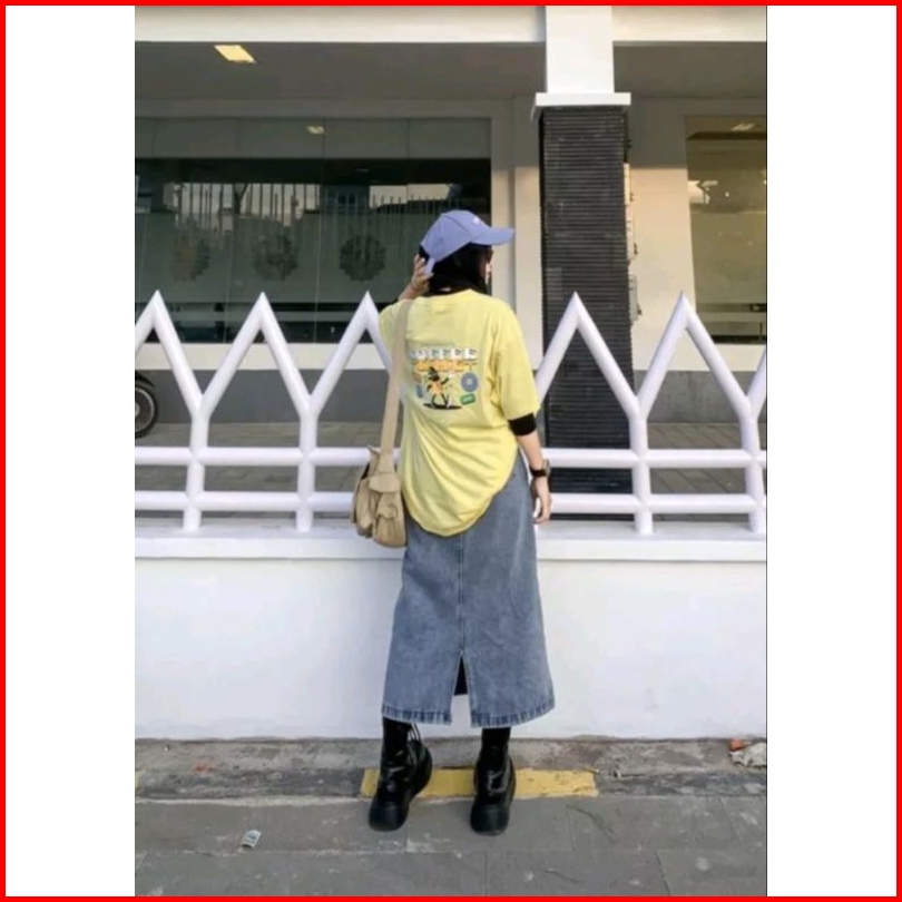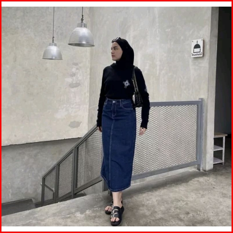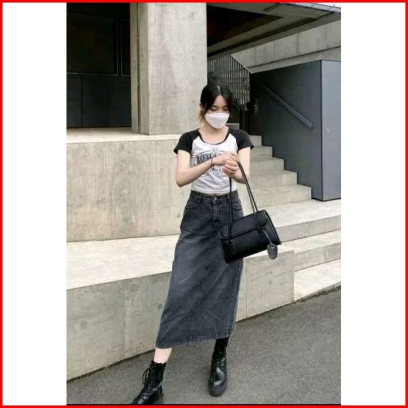 Ghjeans Rok Jeans Highwaist Midi Skirt Rok Korea Hijab Rok Jeans Rok Span Rok Cargo Kancing Satu