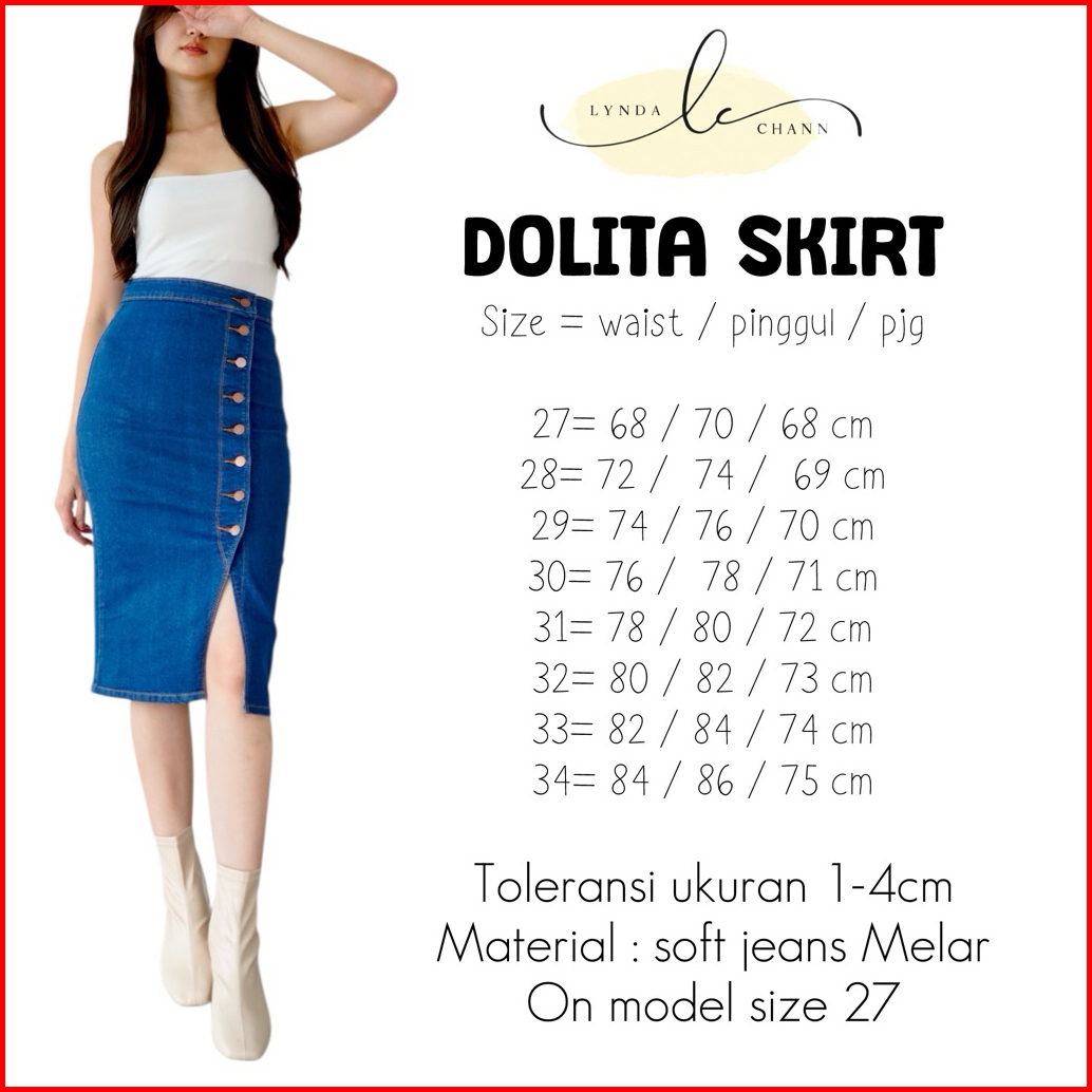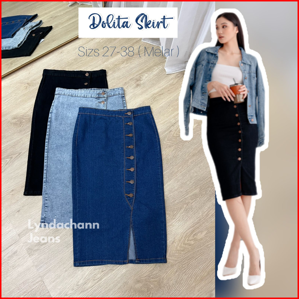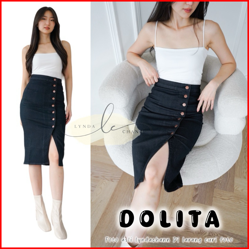 Lyndachann - Dolita Button Skirt Rok Kancing Jeans Premium Midi Santana Skirt