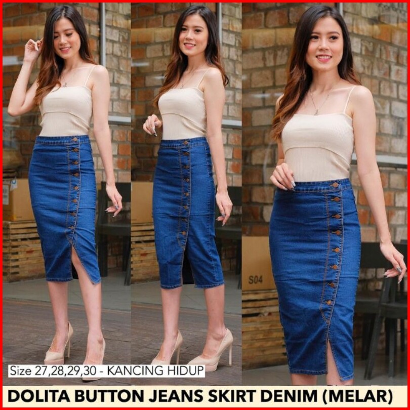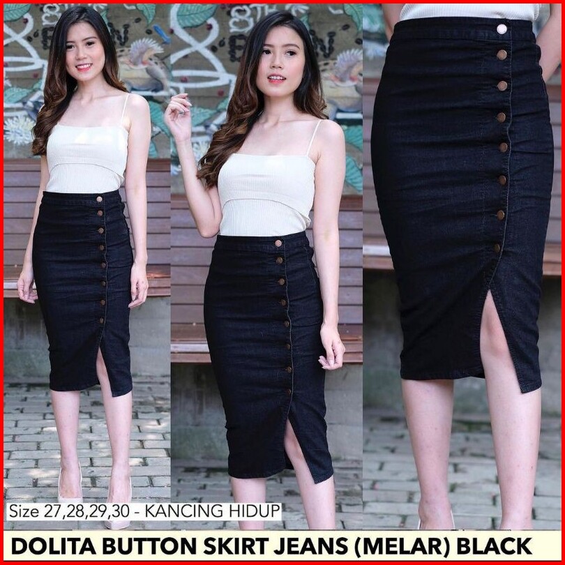 Ready Rok Hitam Dan Biru Kancing Dolita Button Skirt Black Dark Blue 27-34 Rok Jeans Wan