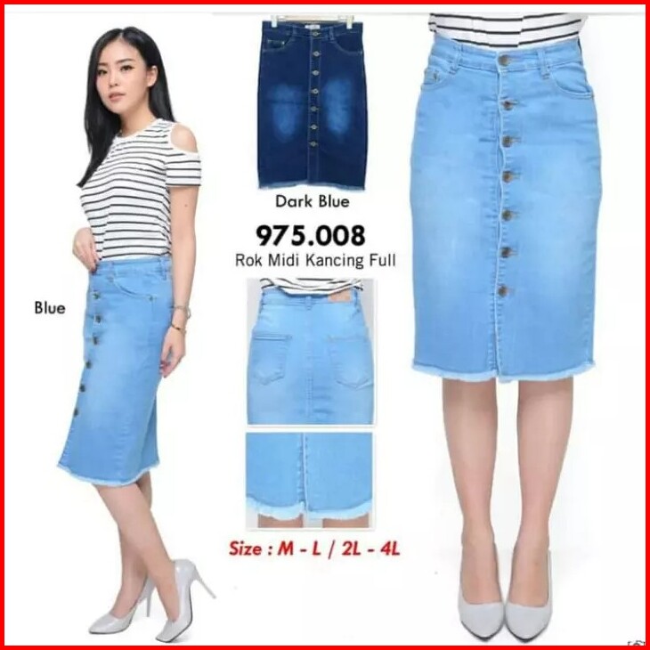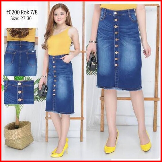 Rok Span Pendek Jeans Kancing Rsjk - Bawahan Wanita Bahan Jeans Good Quality