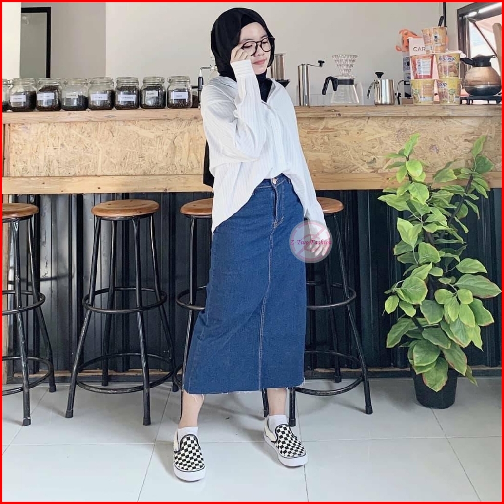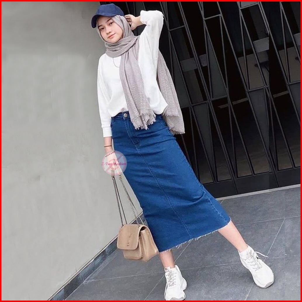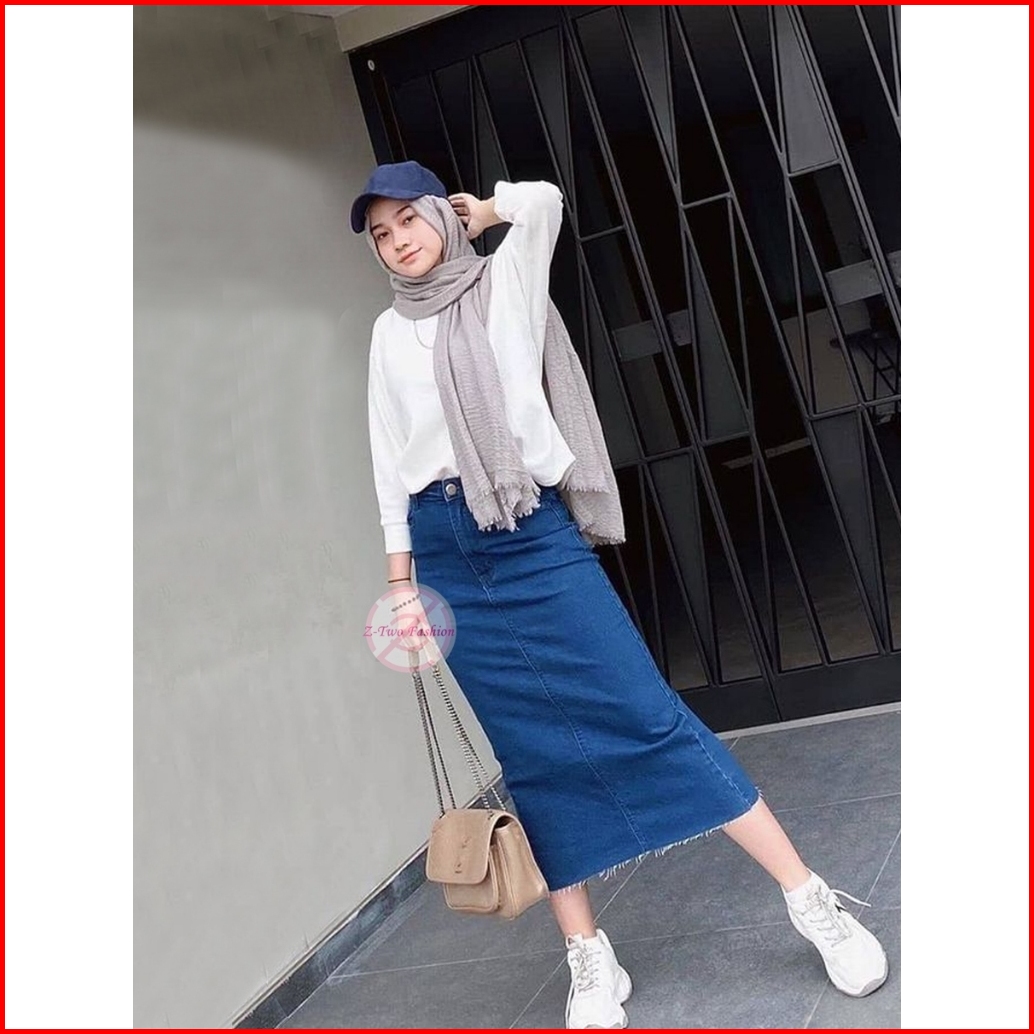 Rok Jeans Span 7 9 Unfinish Cutting Midi Korean Style Yuki 2024