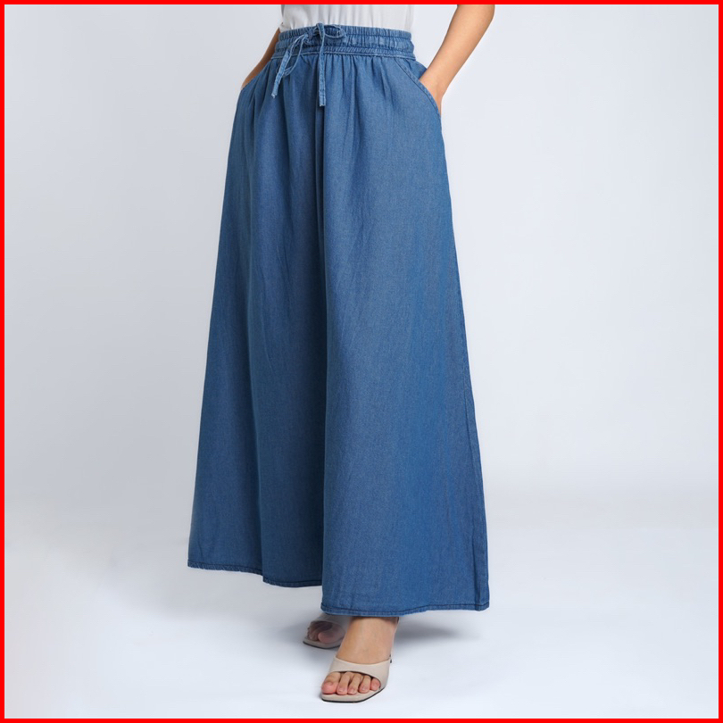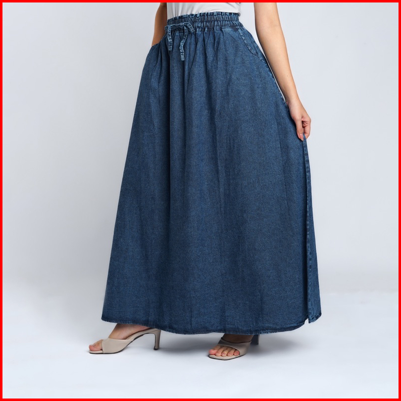 Dline Rok Panjang Jeans Polos Long Skirt Amber