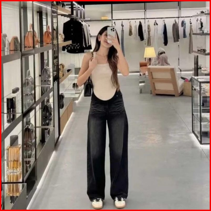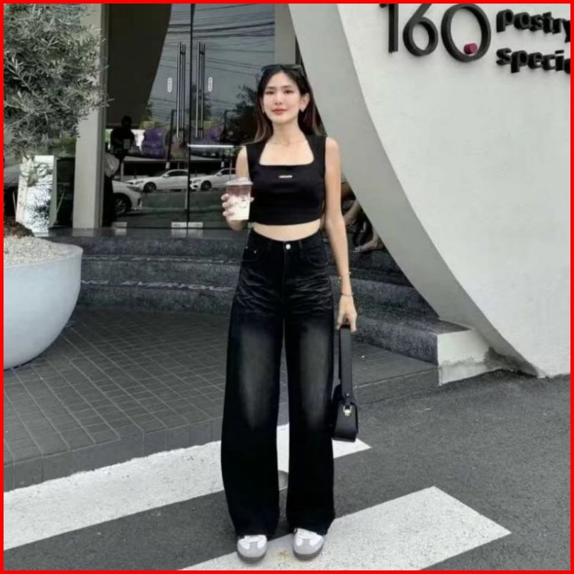 Celana baggypants, HITAM - SPRAY