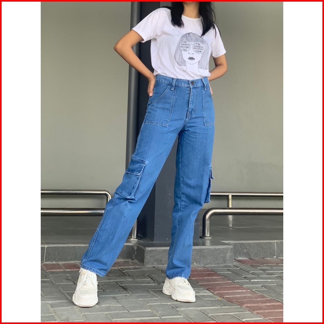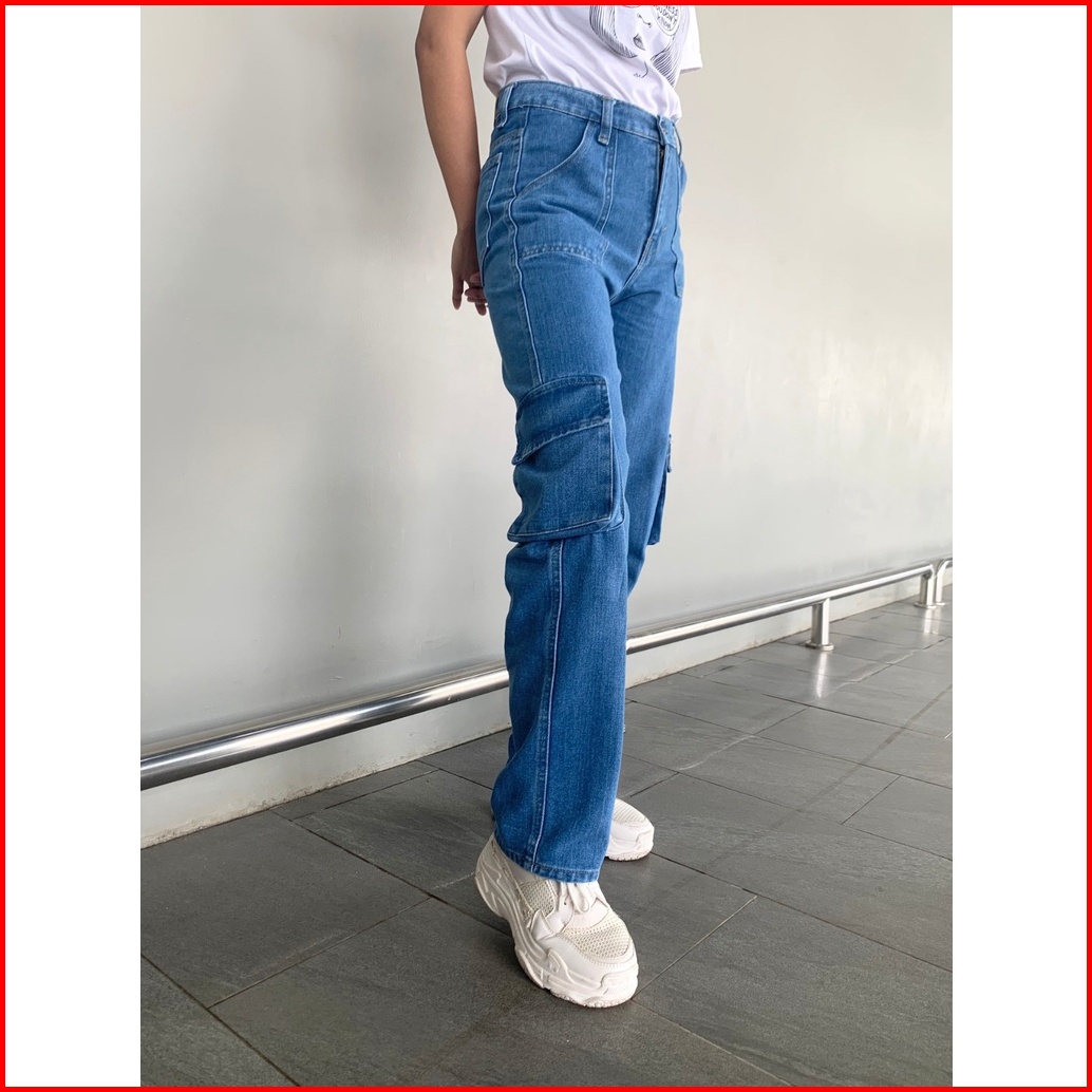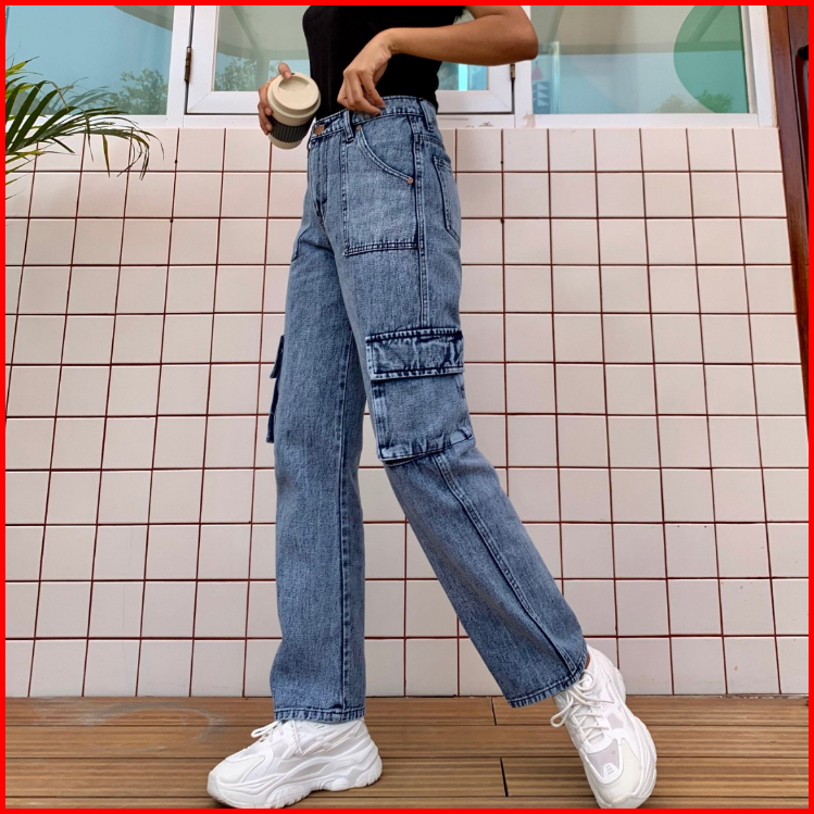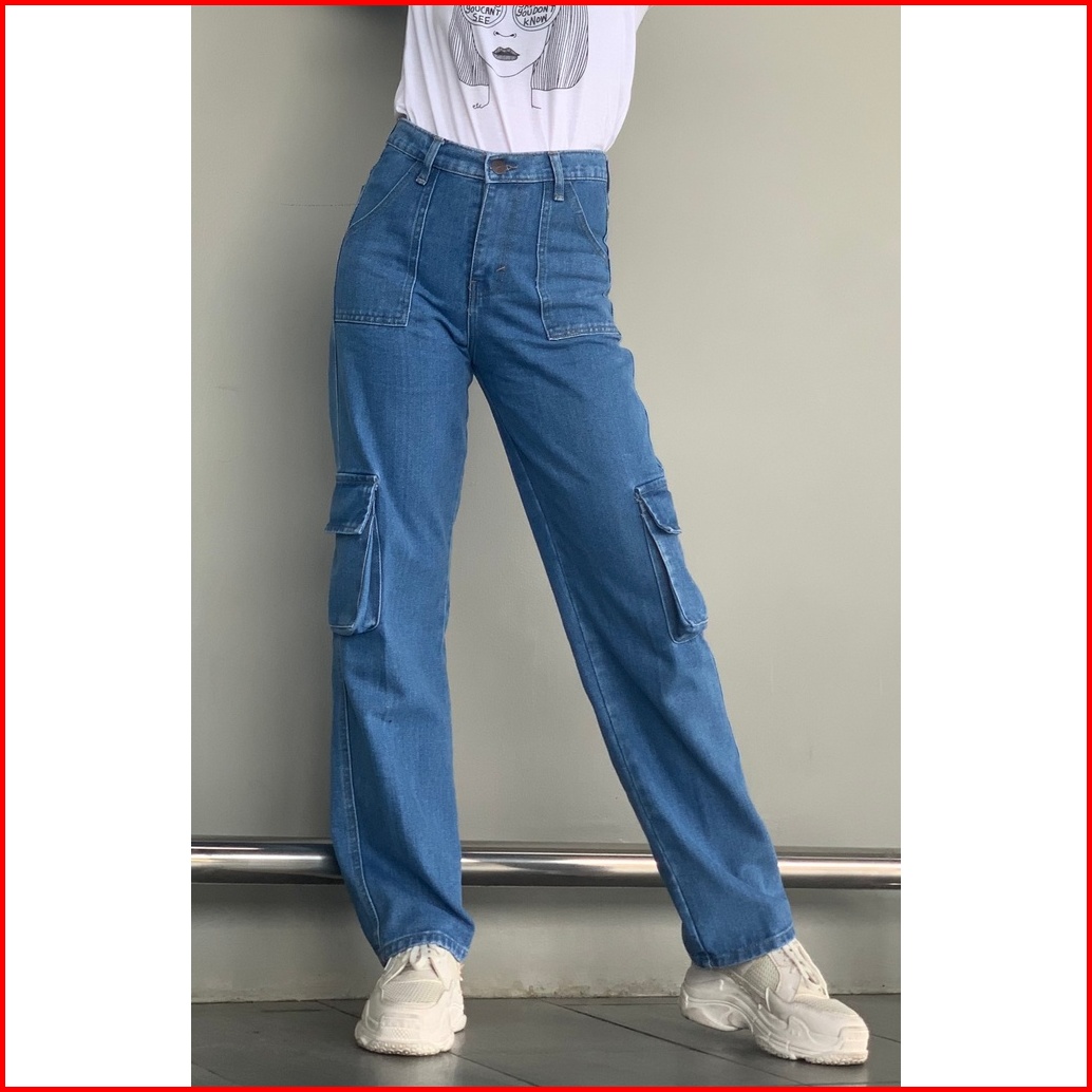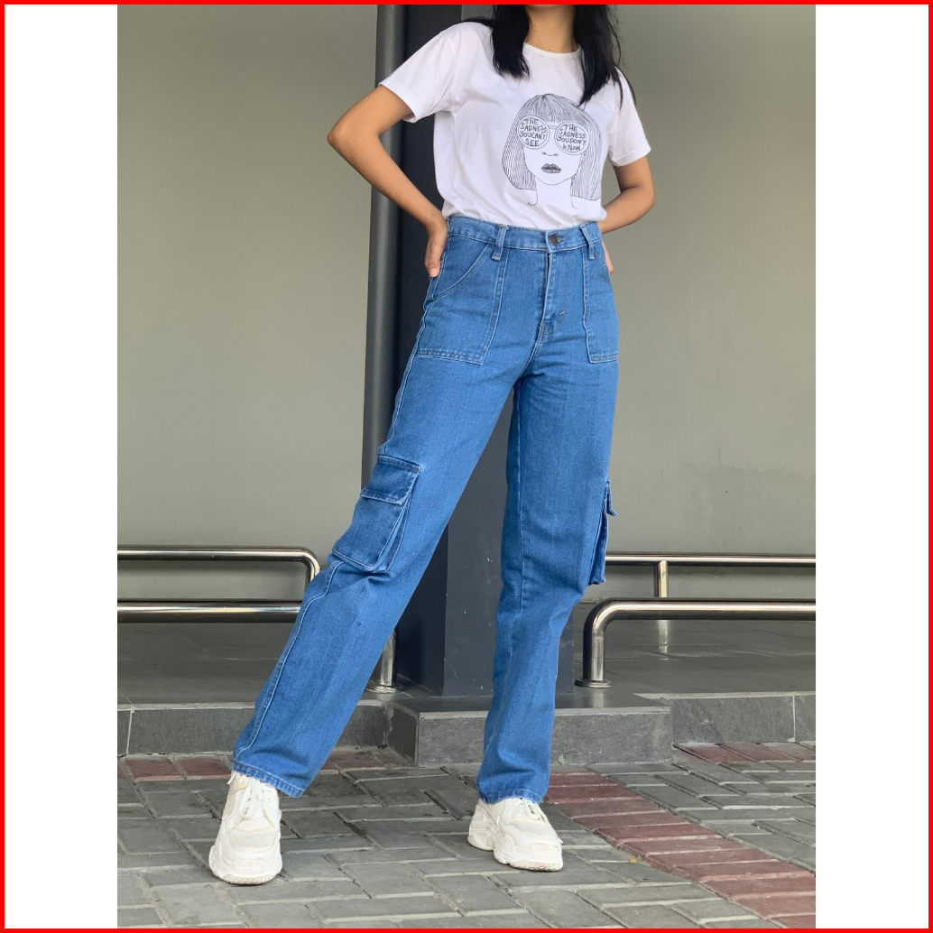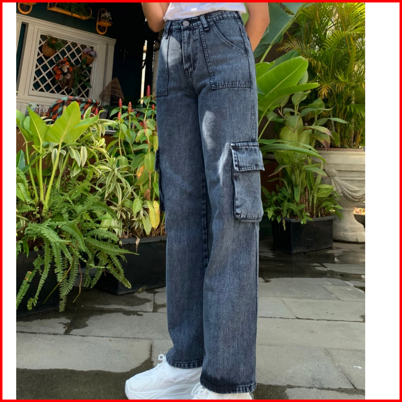 Be.gracious-lucia Cargo Cargo Jeans Wanita Jeans Pocket