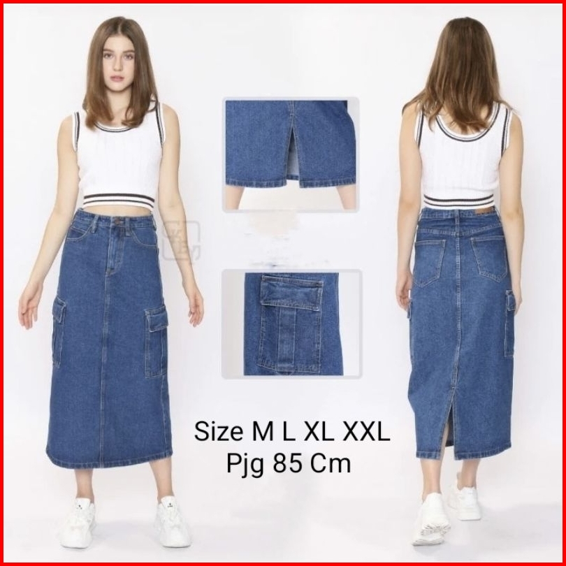 Rok Jeans Cargo Wanita Kece Rok Sctret Big Jumbo Rok Jeans Tebal Rok Kekinian