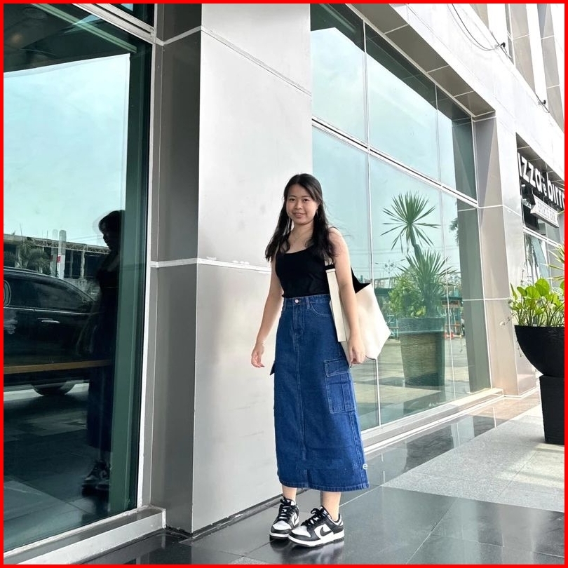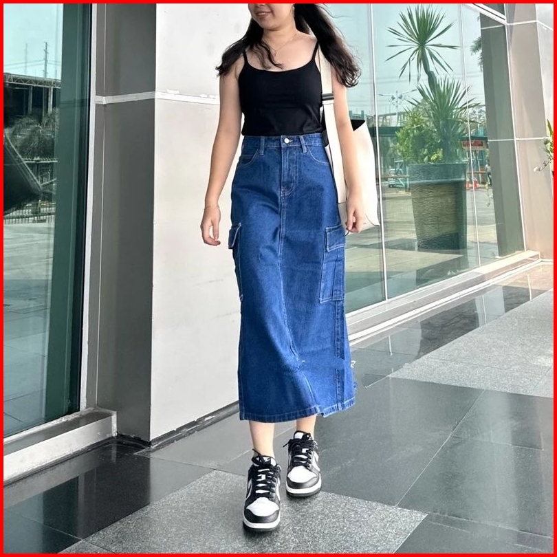 Rok Cargo Denim Wanita Terbaru 2022 Rok Jeans Rawis Bawah Rok Maxi Jumbo Rok Span Kekinian Rok Sctret Dan Melar
