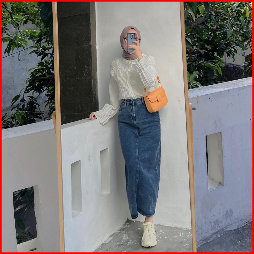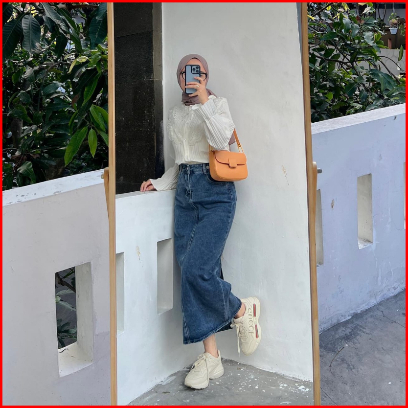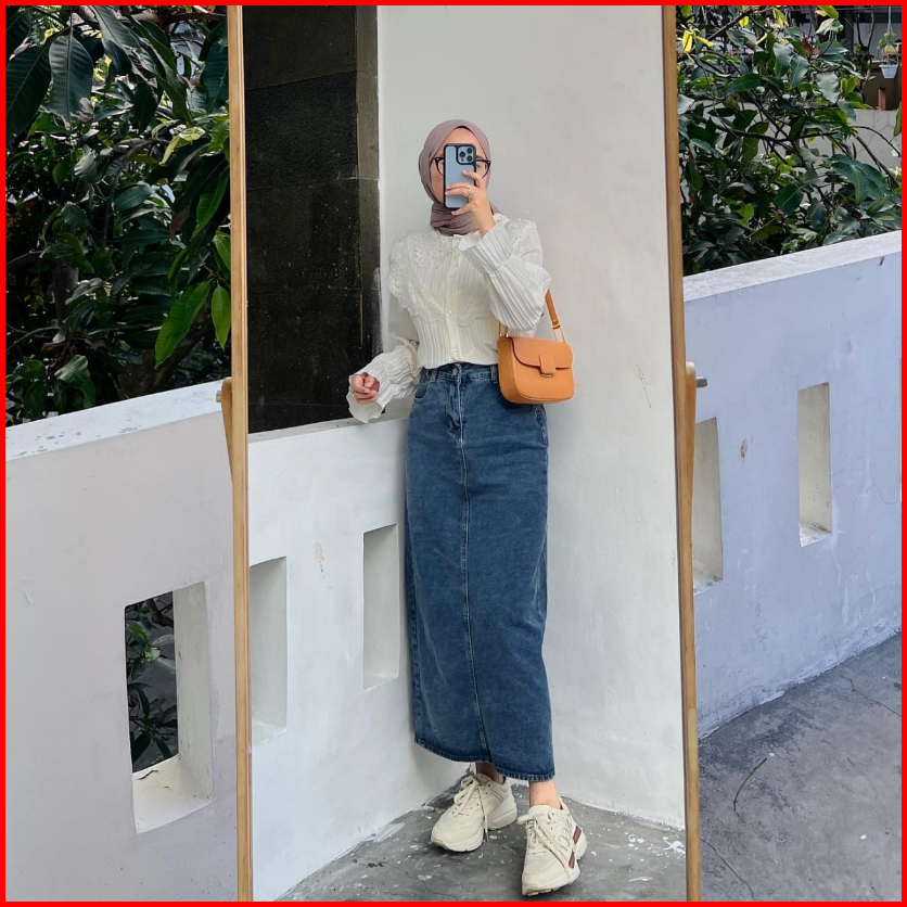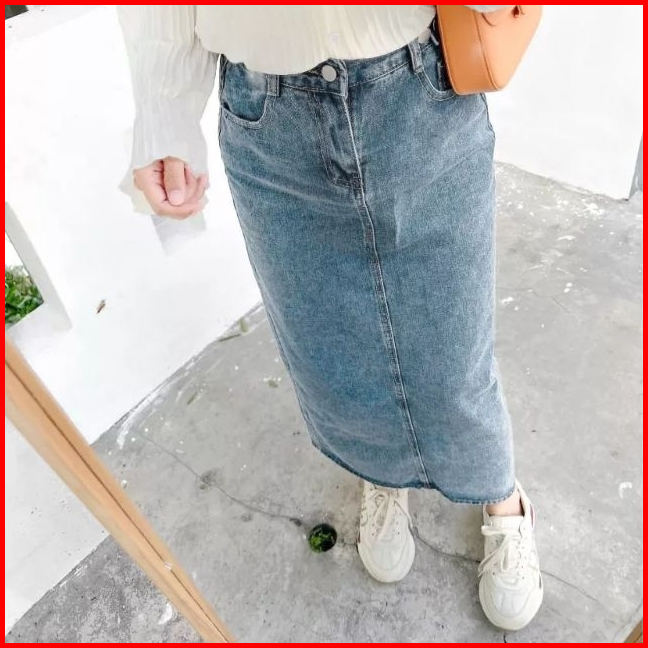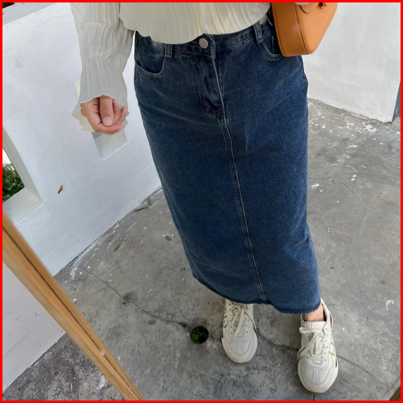 Rok Jeans Wanita Belah Belakang Denim Skirt Theana