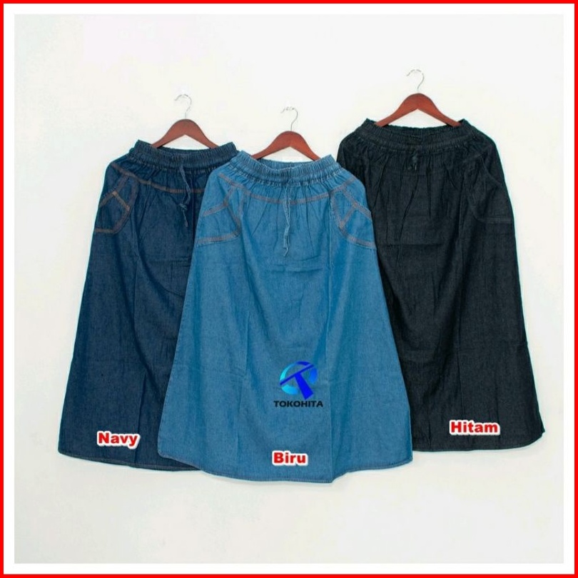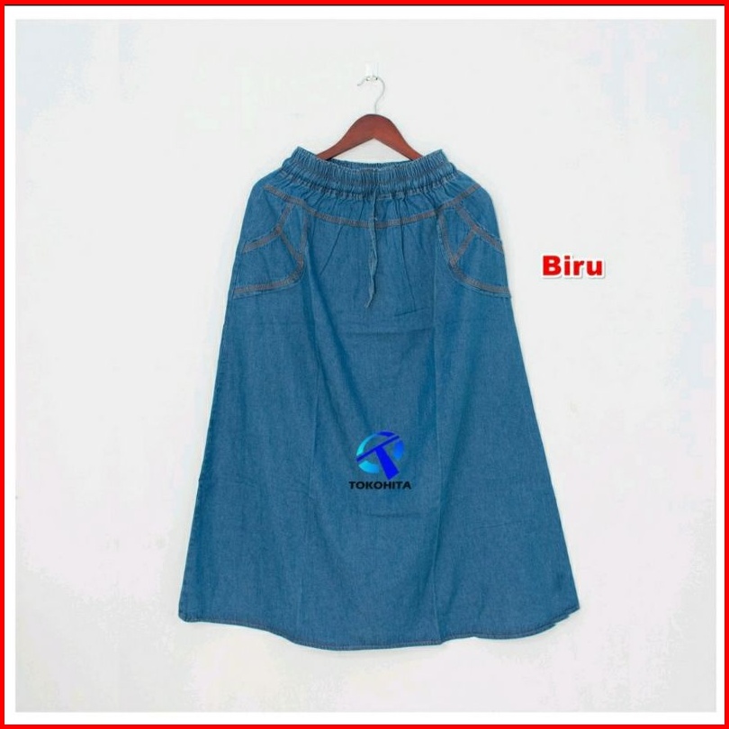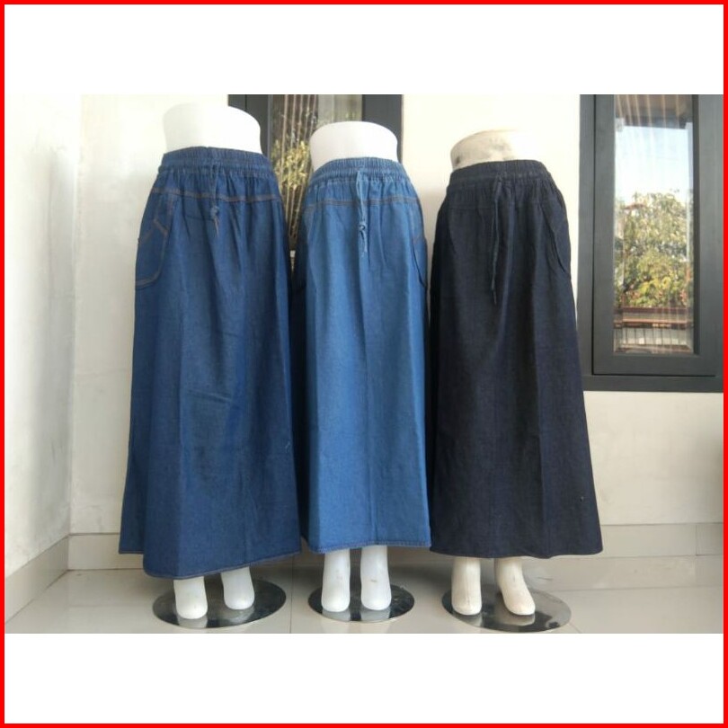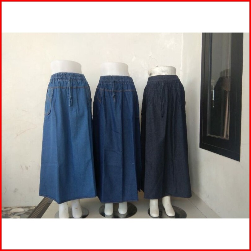 Rok Jeans Panjang Model A Polos Terlaris - Rok Jeans Model A Standar Termurah