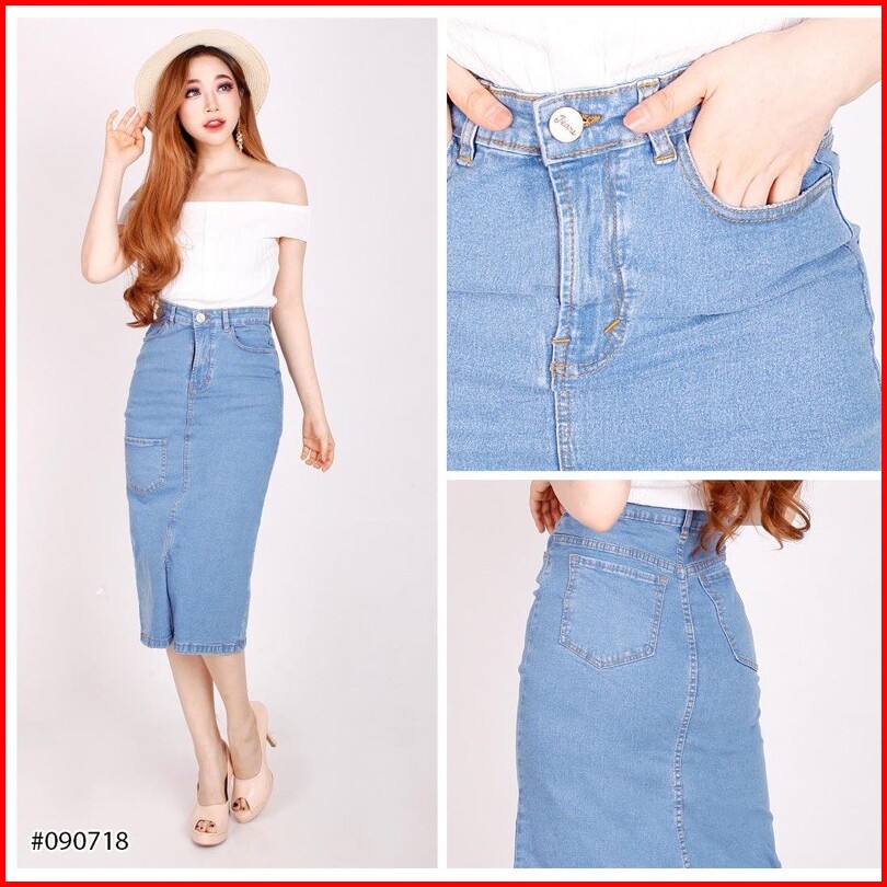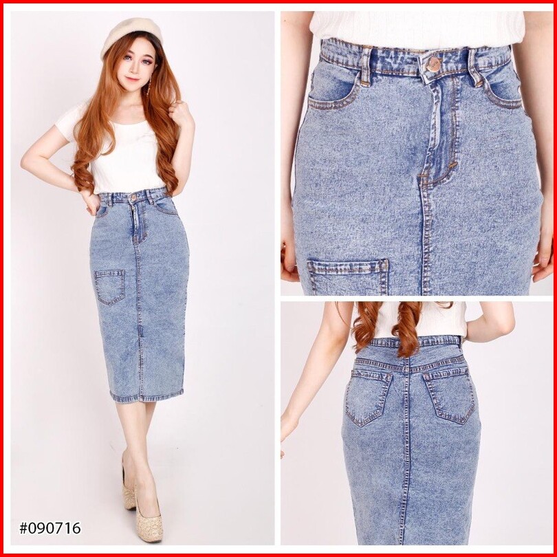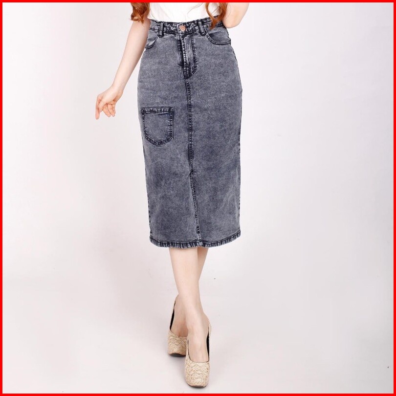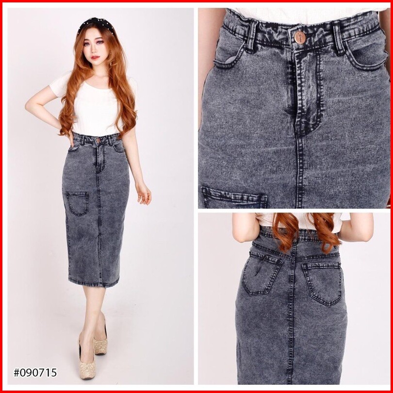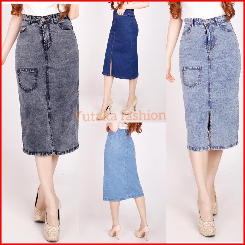 Rok Span Belah Depan Rok Jeans 3 4 Premium Yutaka Fashion
