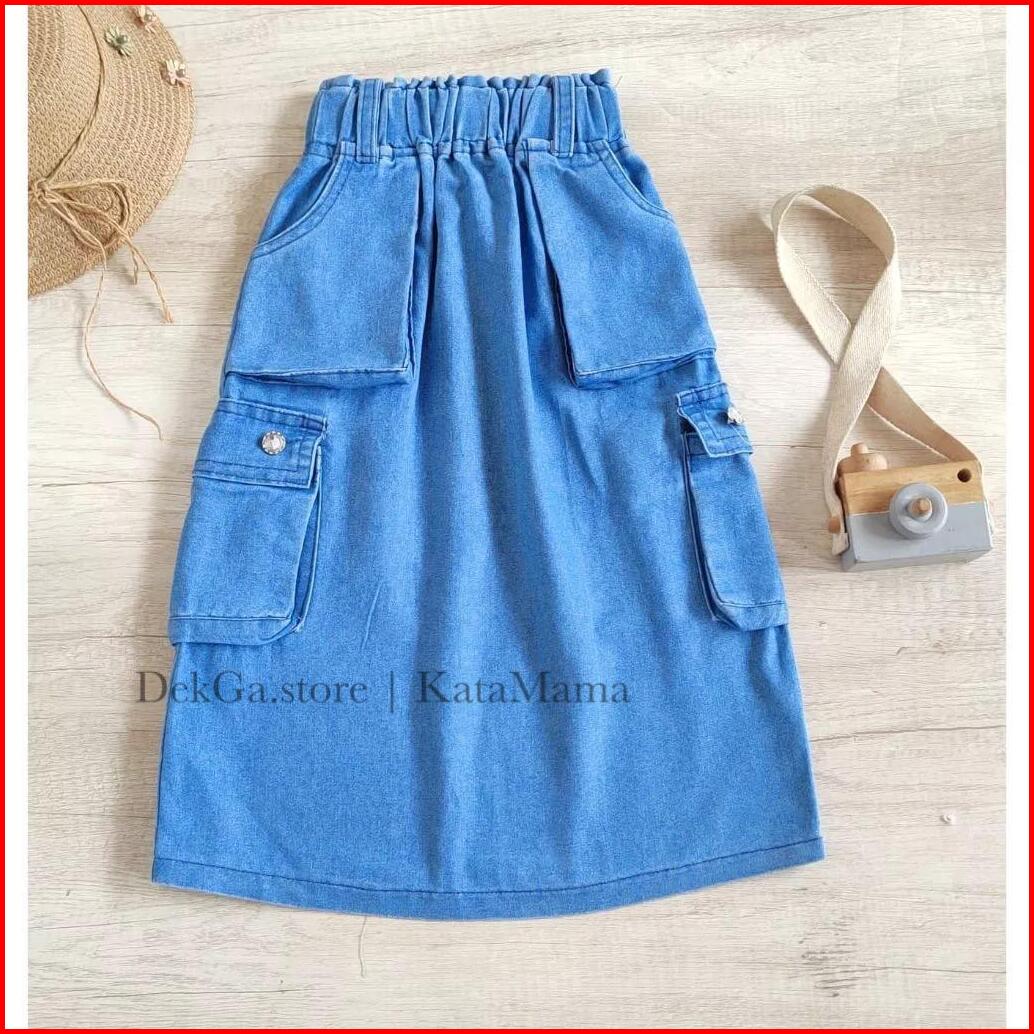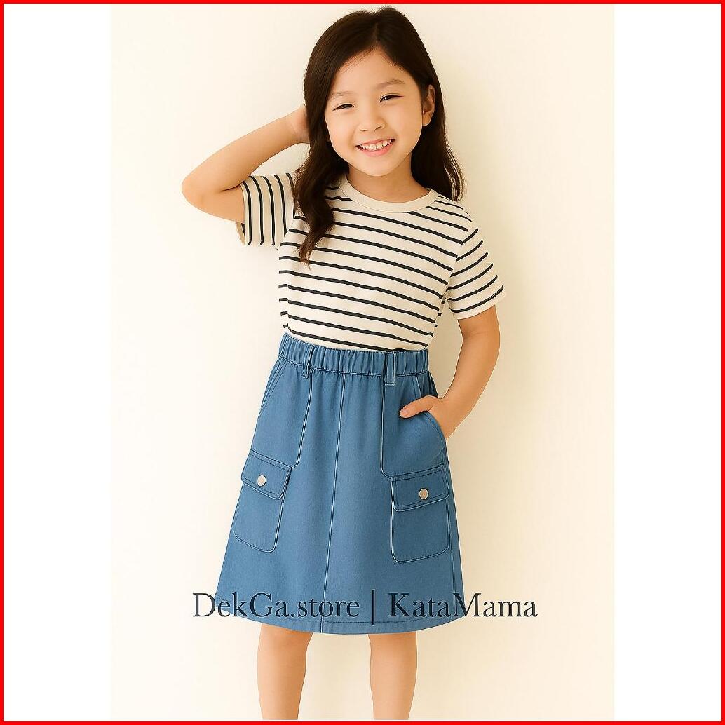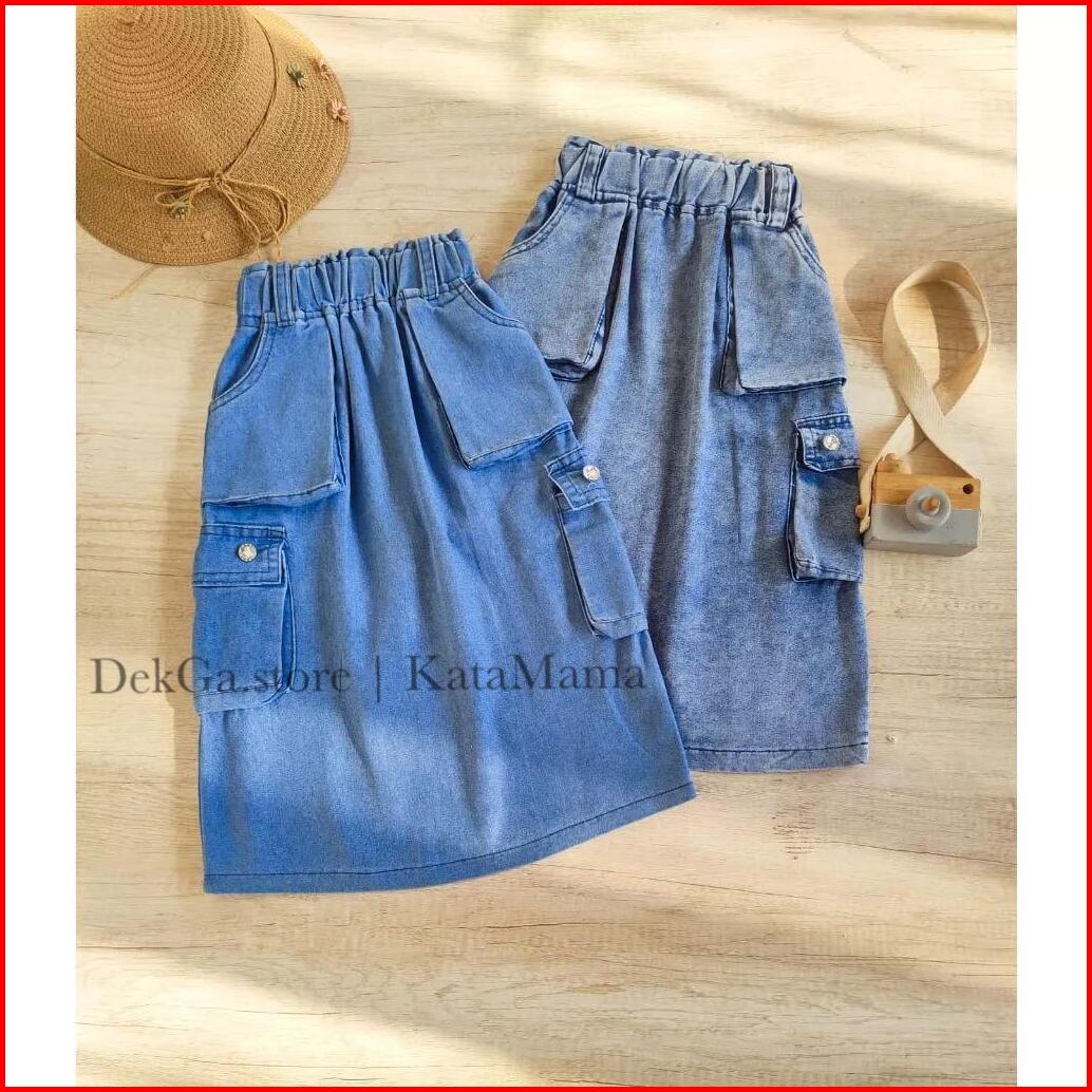 Rok Jeans Anak Selutut Rok 7 8 Cargo Denim Lembut Usia 4-12tahun