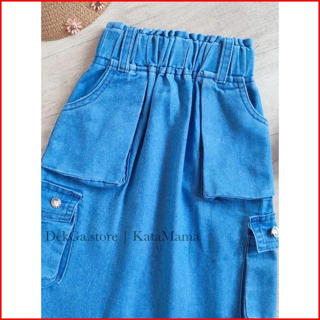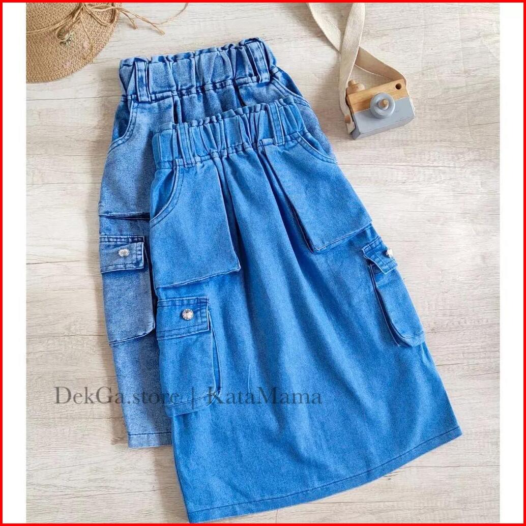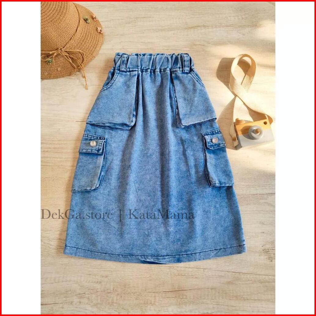 Rok Jeans Anak Selutut Rok 7 8 Cargo Denim Lembut Usia 4-12tahun