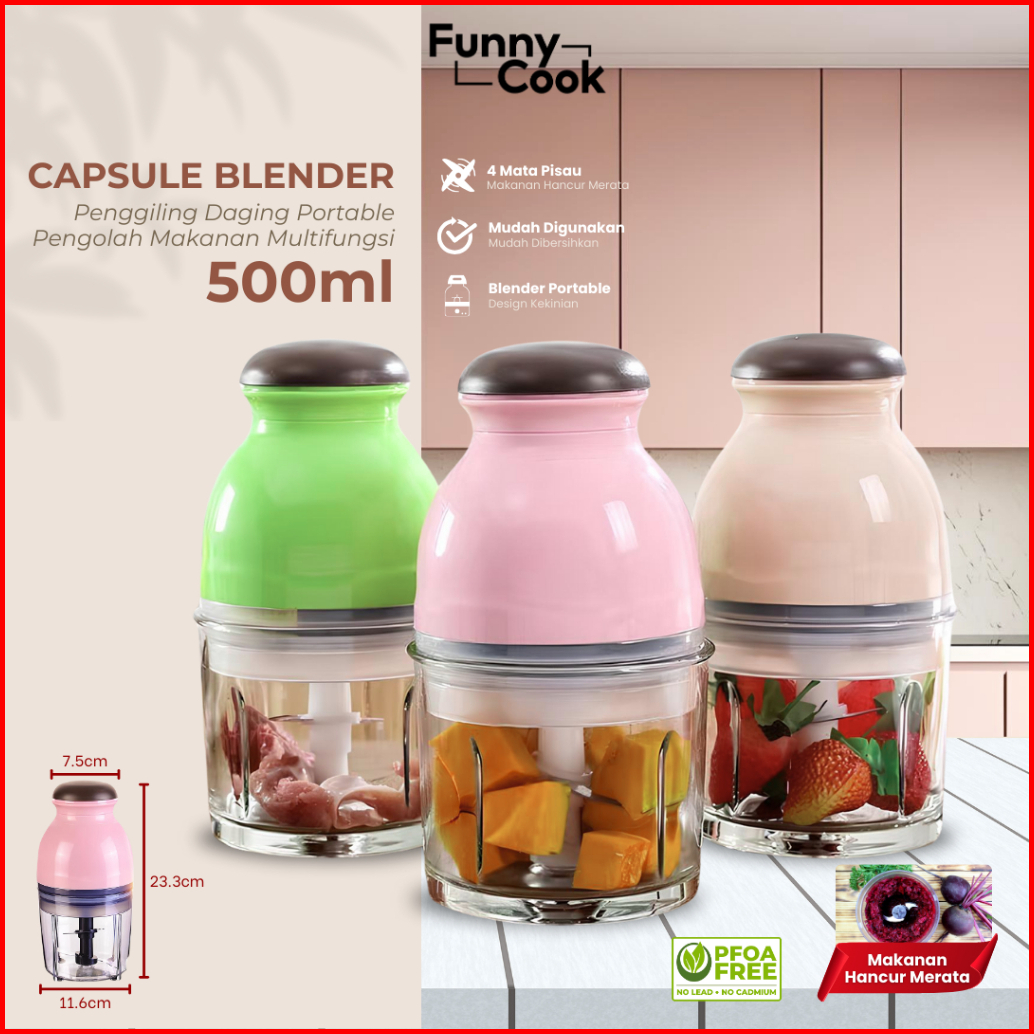 Funnycook Blender Kapsul Penggiling Daging Portable Chopper Capsule Mini Penggiling Daging Sayur Buah