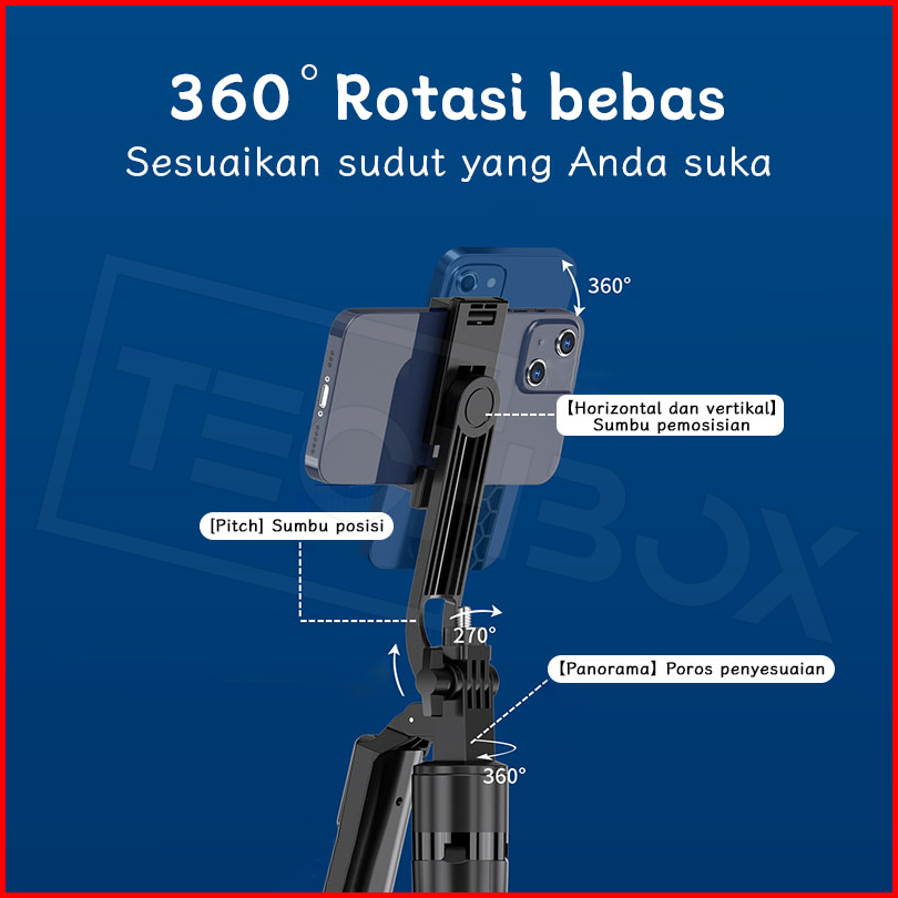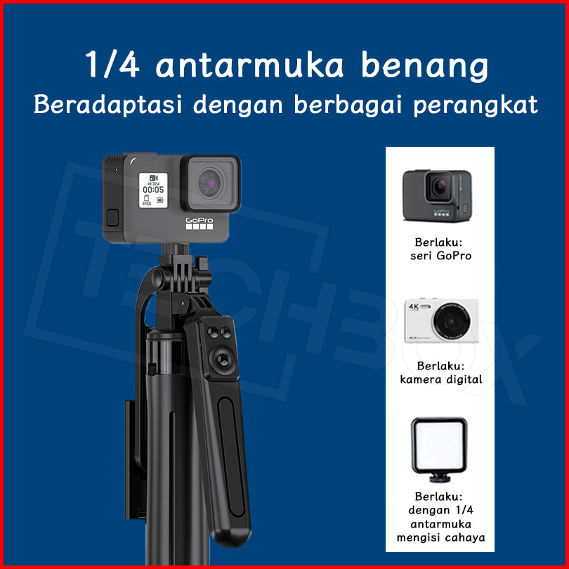 Tech Tongsis Tripod Bluetooth 180cm Paduan Aluminium Selfie Stick 4-leg Stand Remote Tripod Hp Kamera Dslr Tongsis Denga