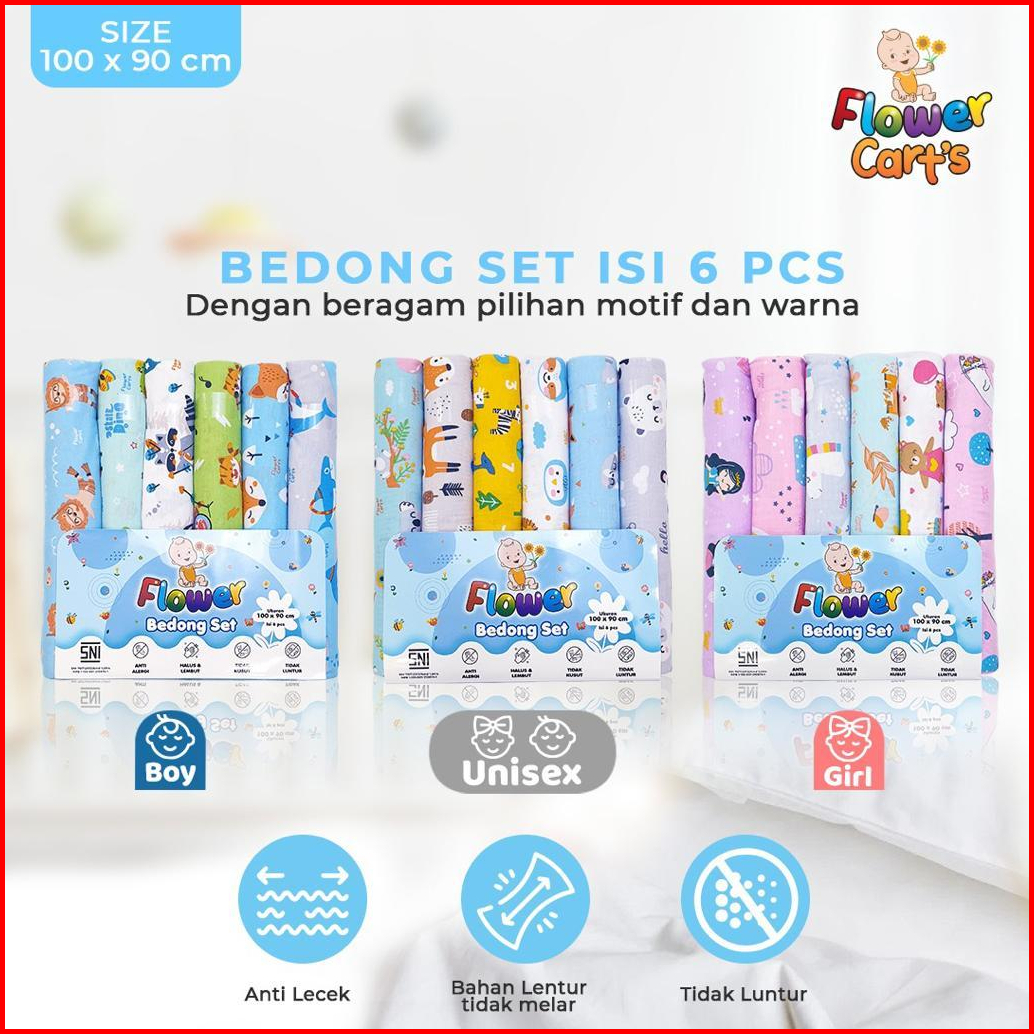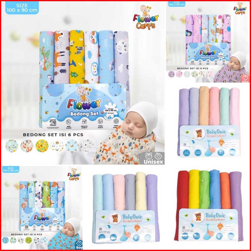 Bedong Flower Owie Bahan Kaos Warna Rainbow Pastel Boy Girl Print Motif Isi 6 Pcs Sni