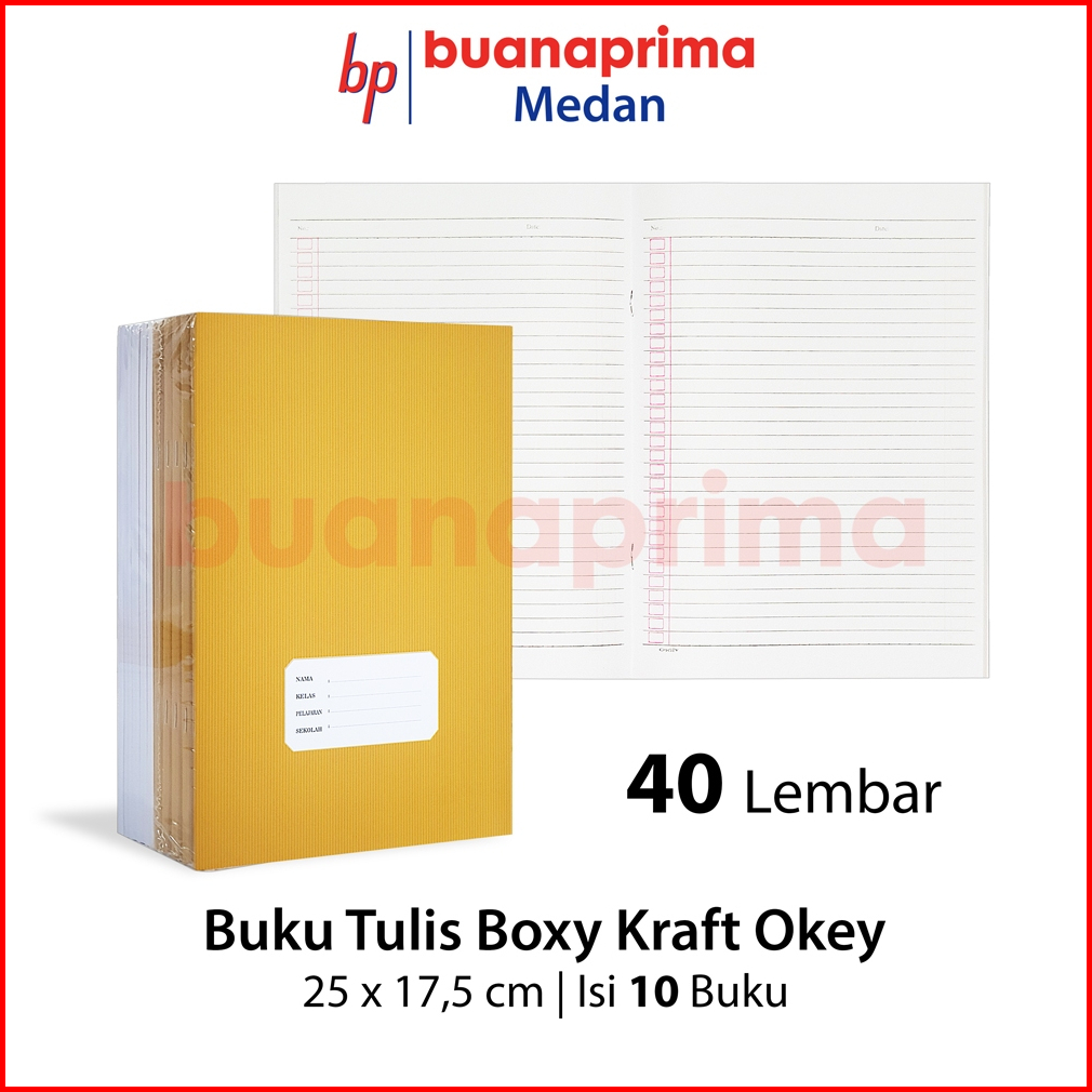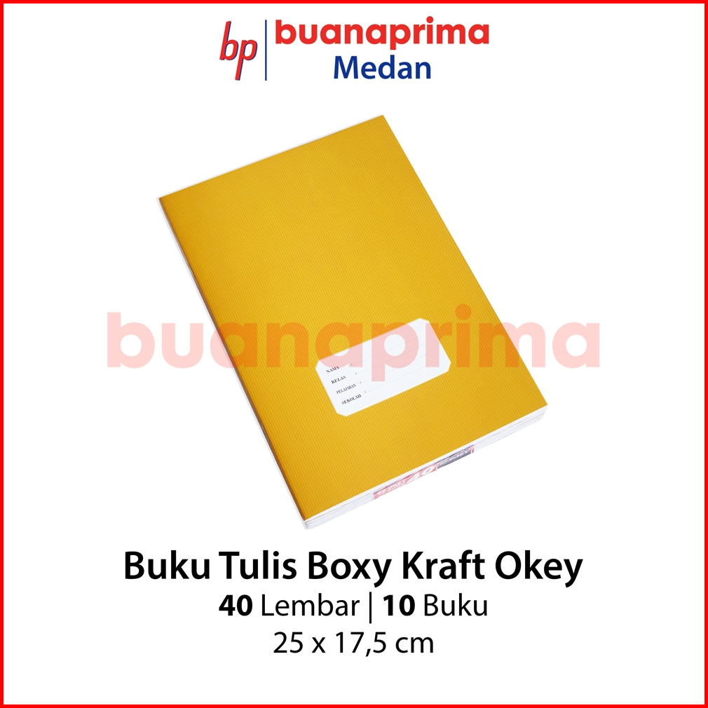 Buku Tulis Panjang Kraft Okey 40 Lembar Boxy 1 Pack Isi 10 Buku Cover Coklat Notebook Sekolah B5