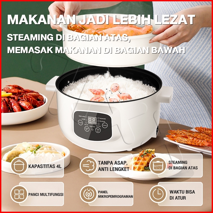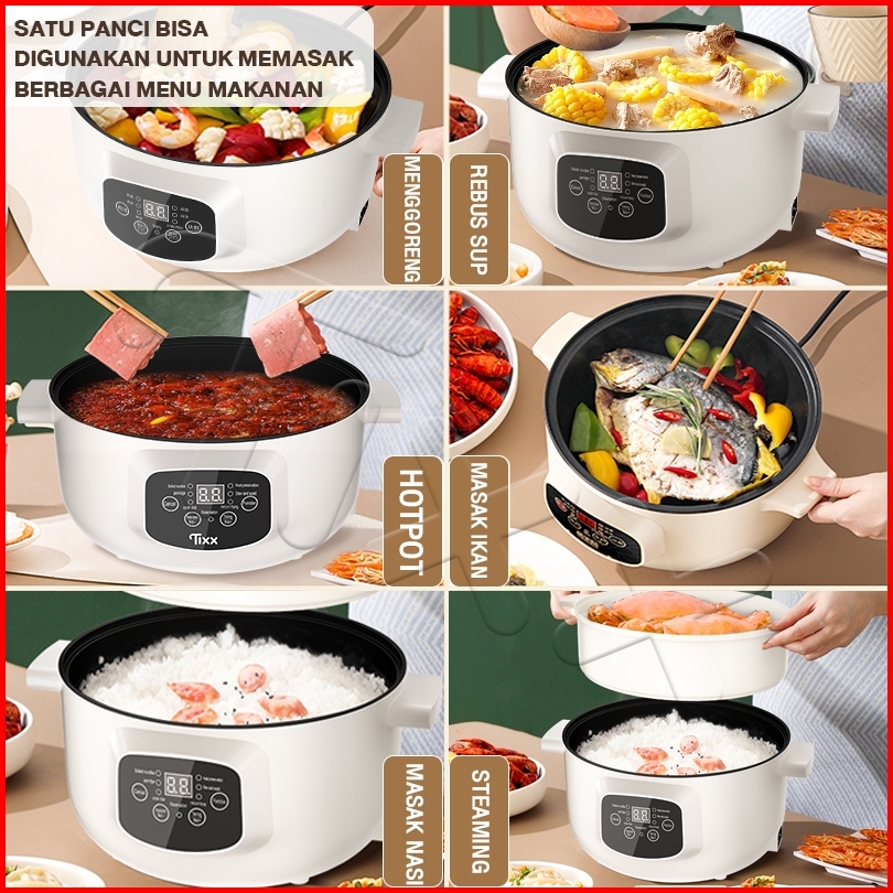 Tixx Panci Elektrik Serbaguna 4l Panci Listrik Multifunctional Electric Cooker Free Steamer Panci Elektrik Cooking Pot H