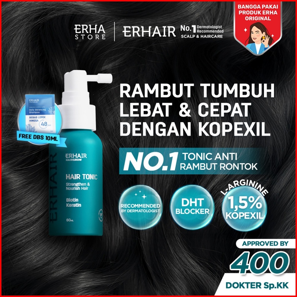 Erhair Hairgrow Tonic With Kopexil 60ml - Tonic Keratin Biotin Rambut Mengurangi Rontok Menjaga Kesehatan Kulit Kepala D