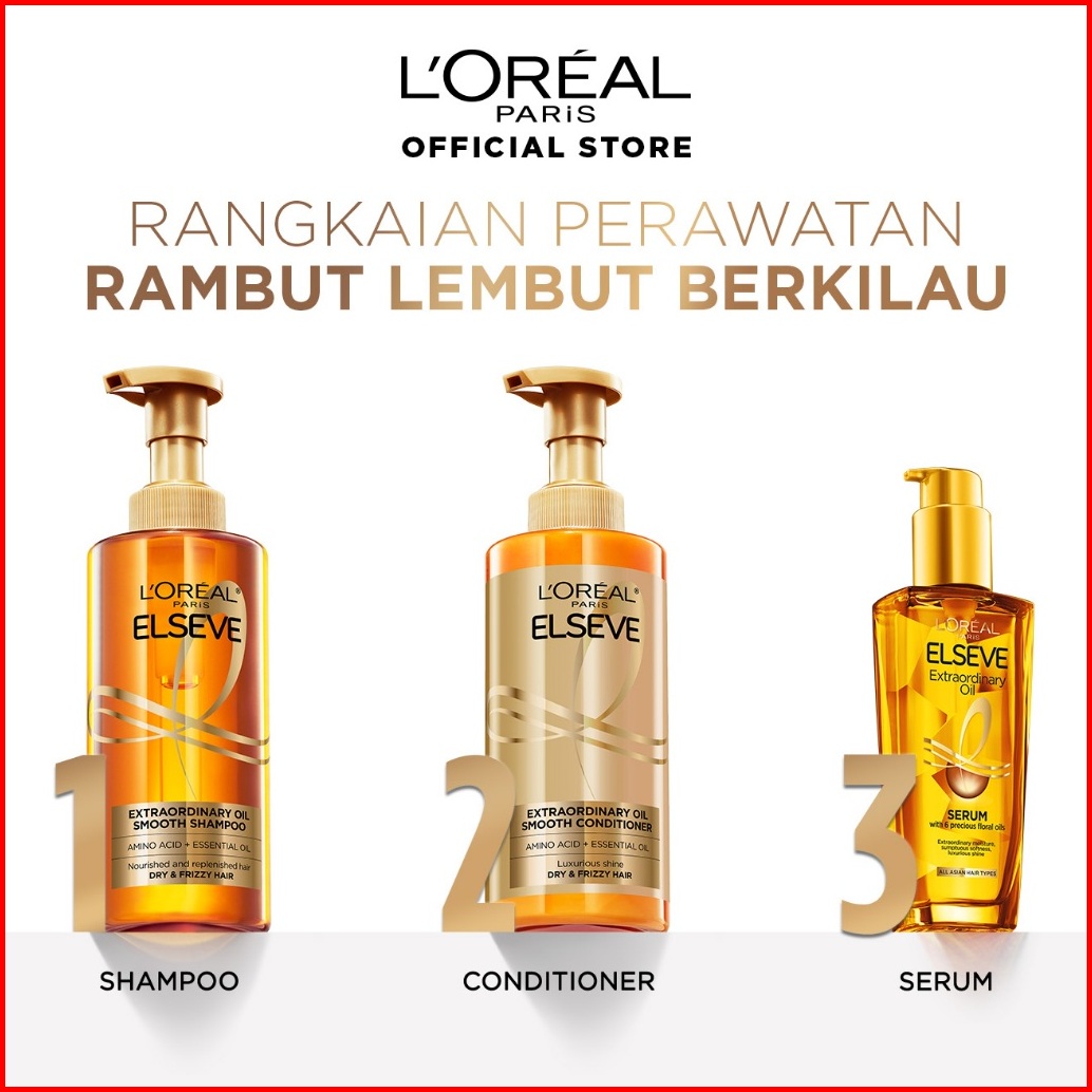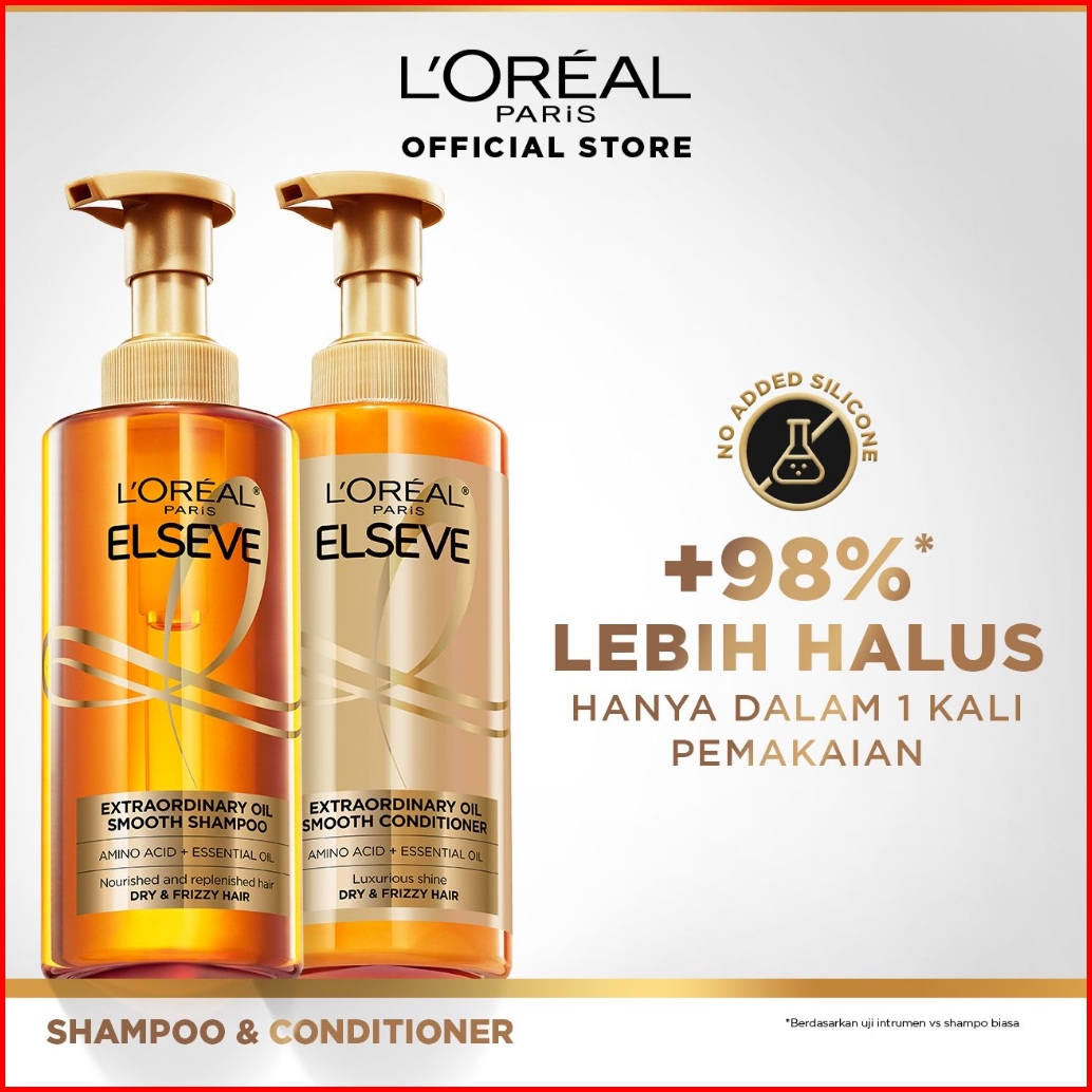 Paket Hemat L Oreal Paris Elseve Extraordinary Oil Sublime Sleek Silicone-free Premium Shampoo Conditioner 440ml Hair Ca