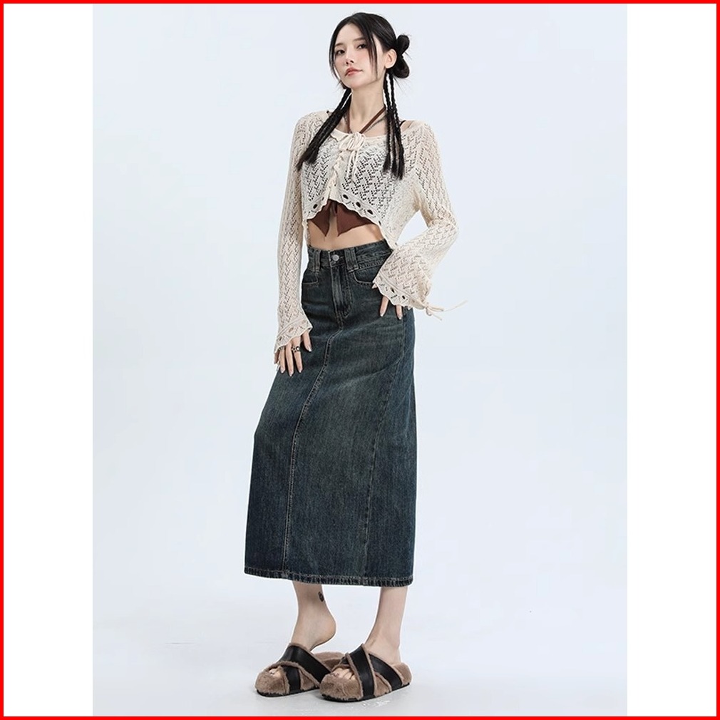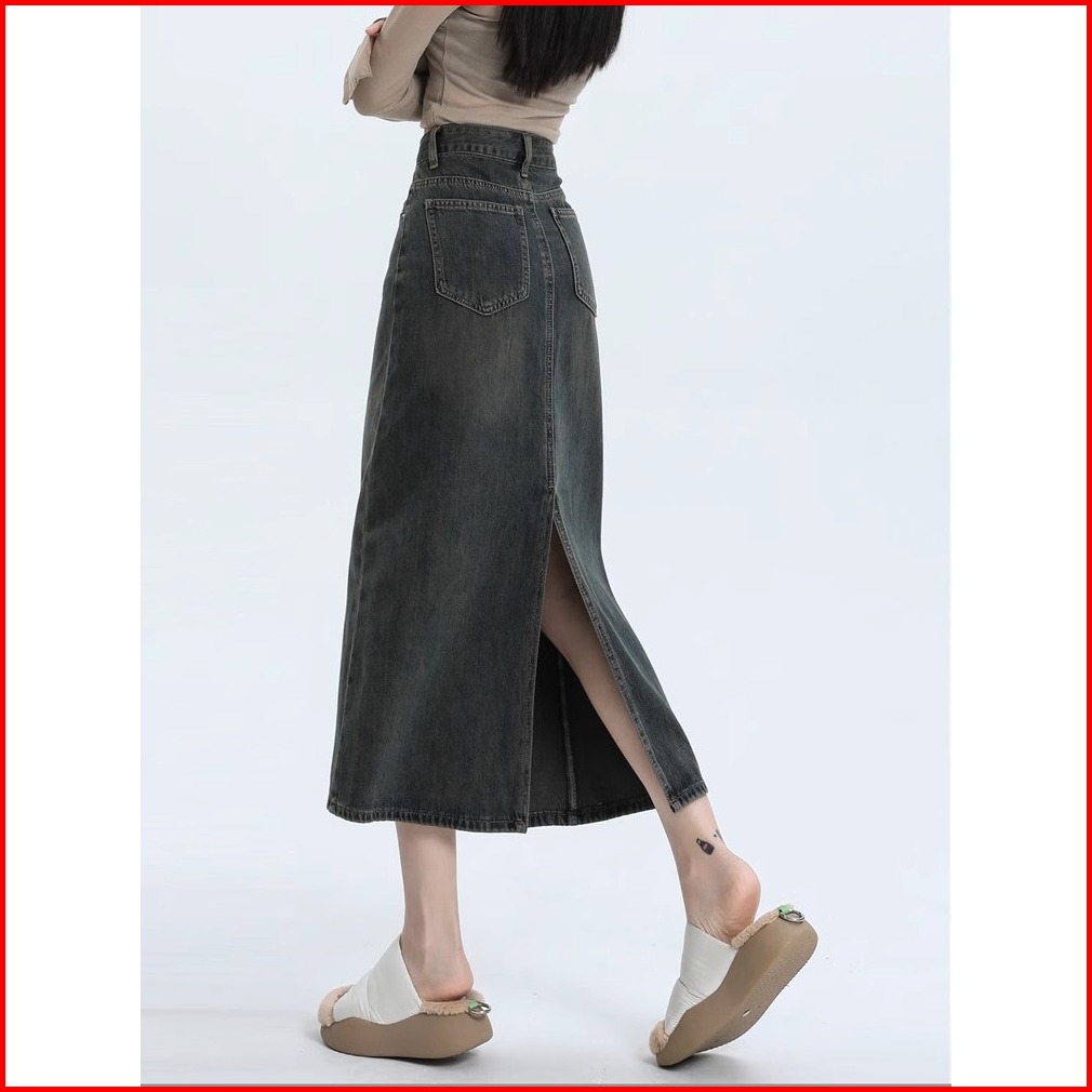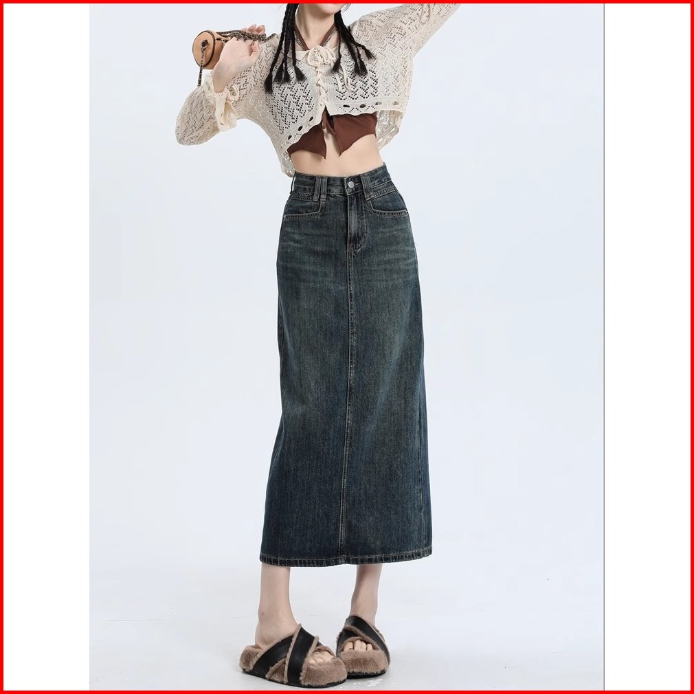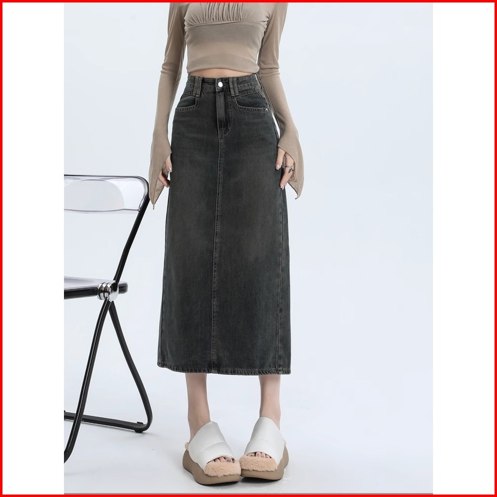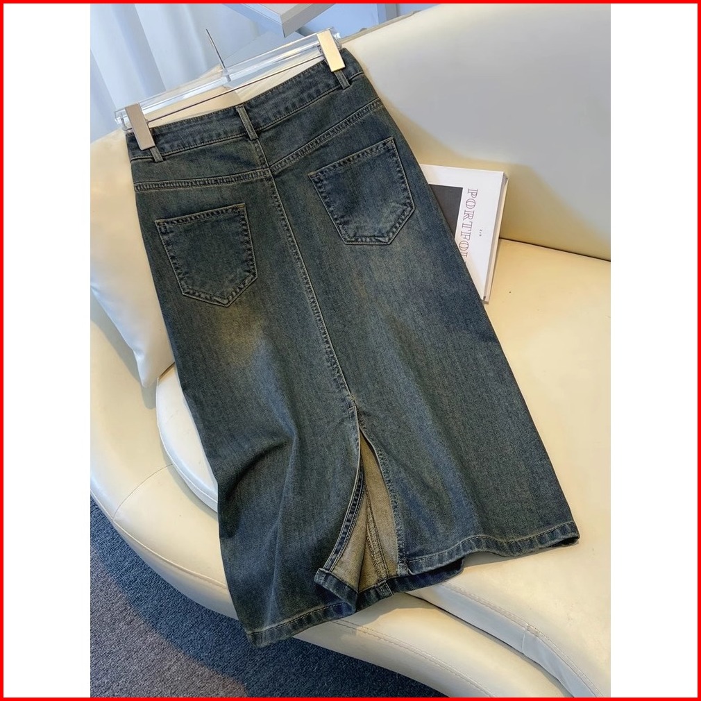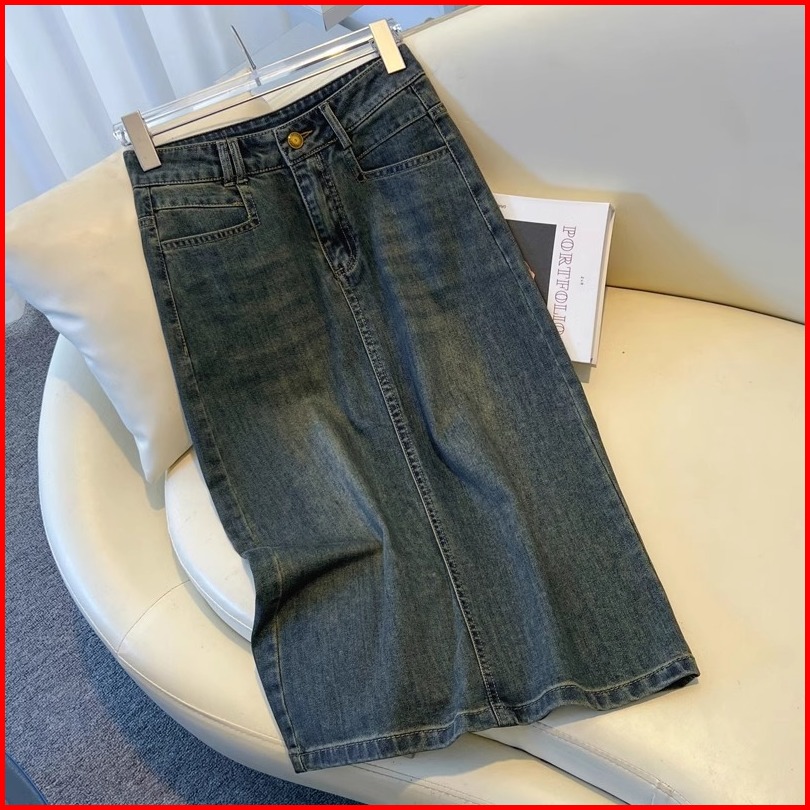 Retro Rok Jeans A-line Highwaist Rok Jeans Wanita Korean