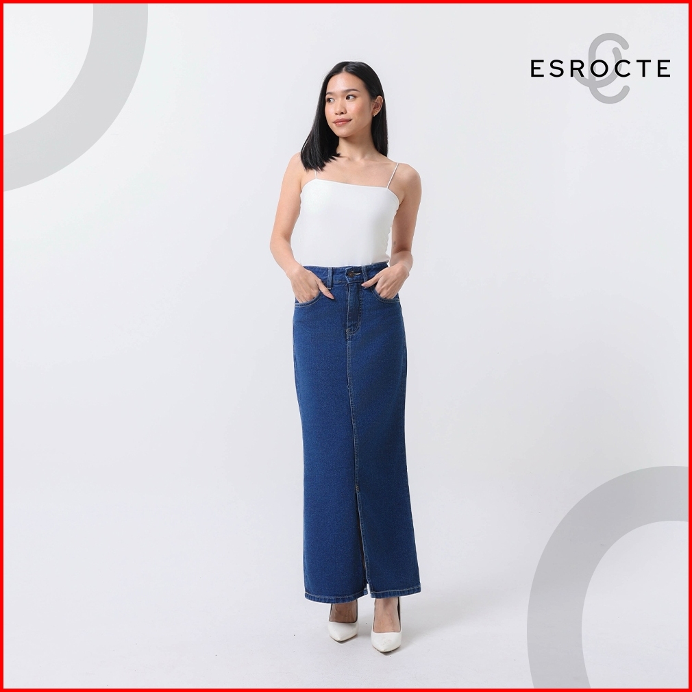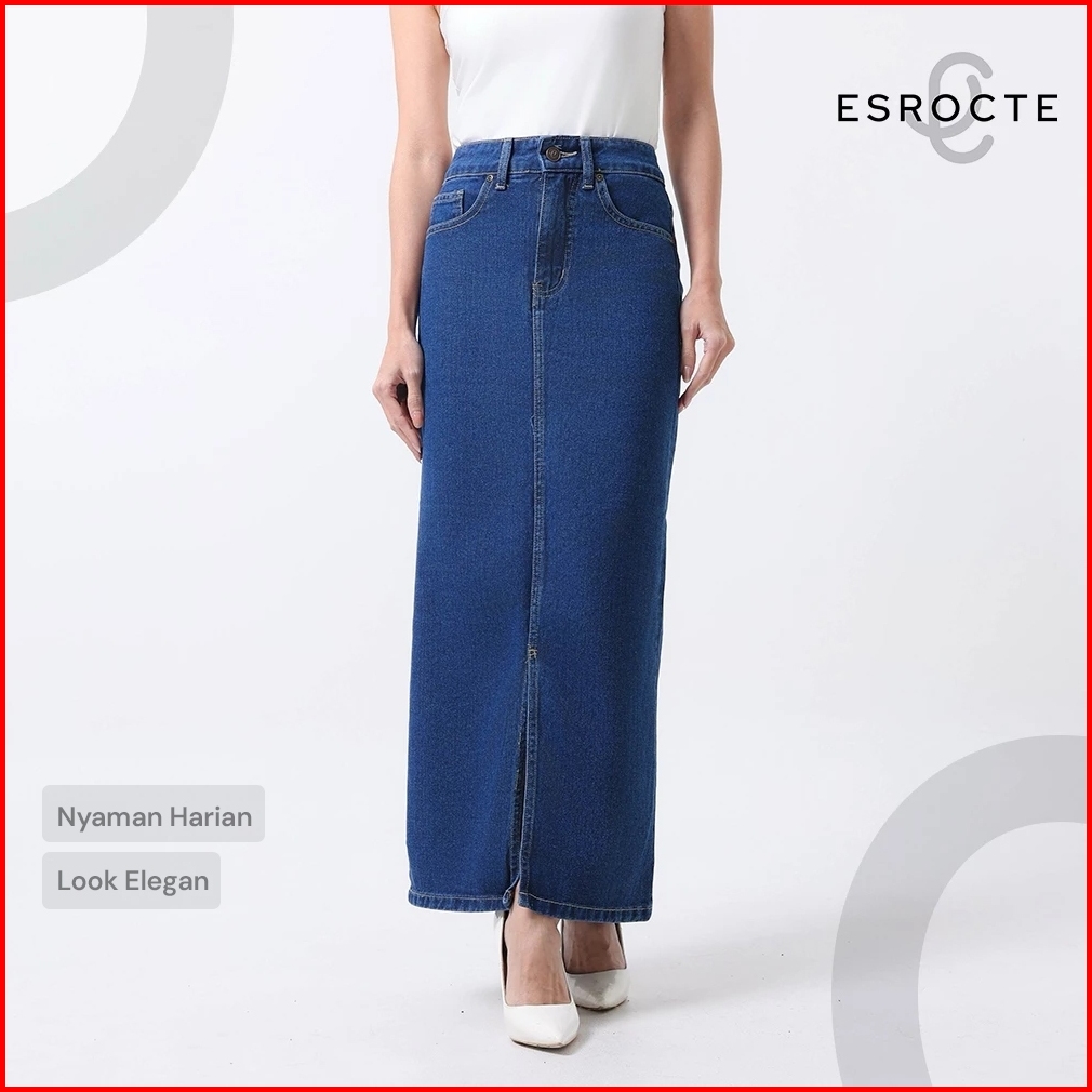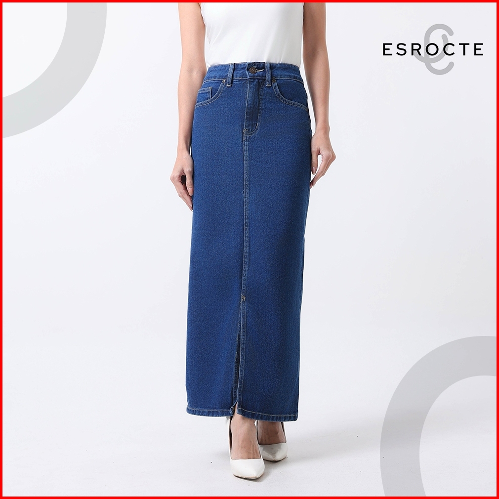 Esrocte Rok Skirt Mid Waist Panjang Jeans Wanita P65 - Navy Washed 26-38