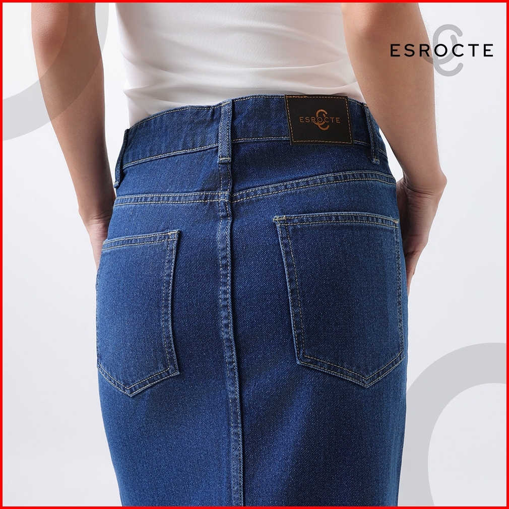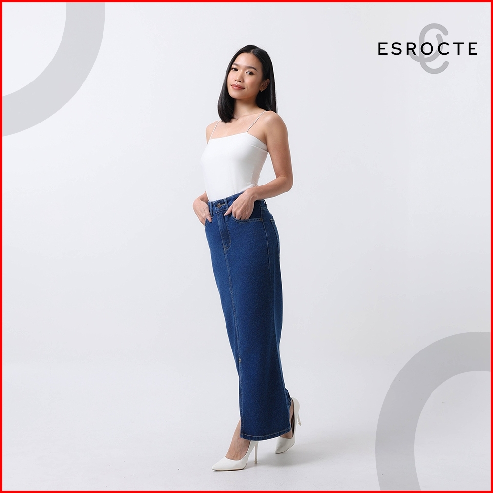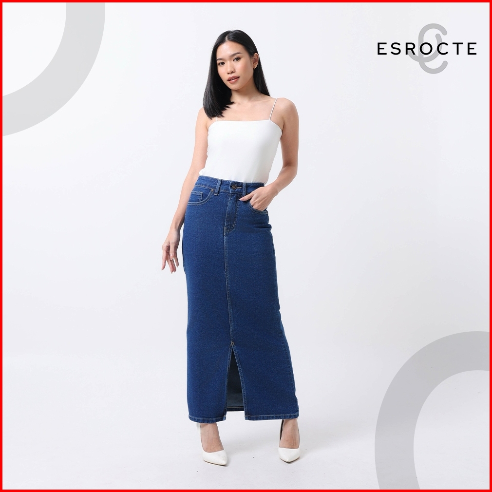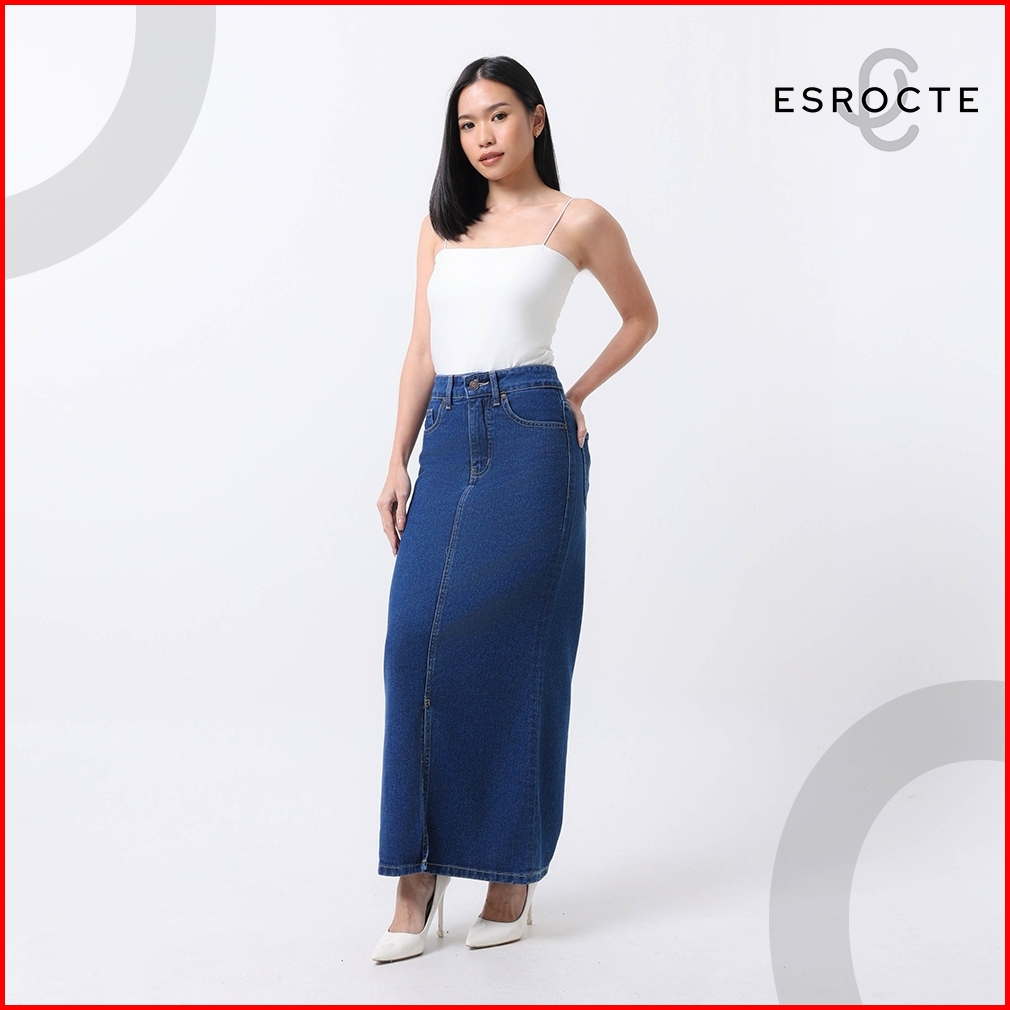 Esrocte Rok Skirt Mid Waist Panjang Jeans Wanita P65 - Navy Washed 26-38