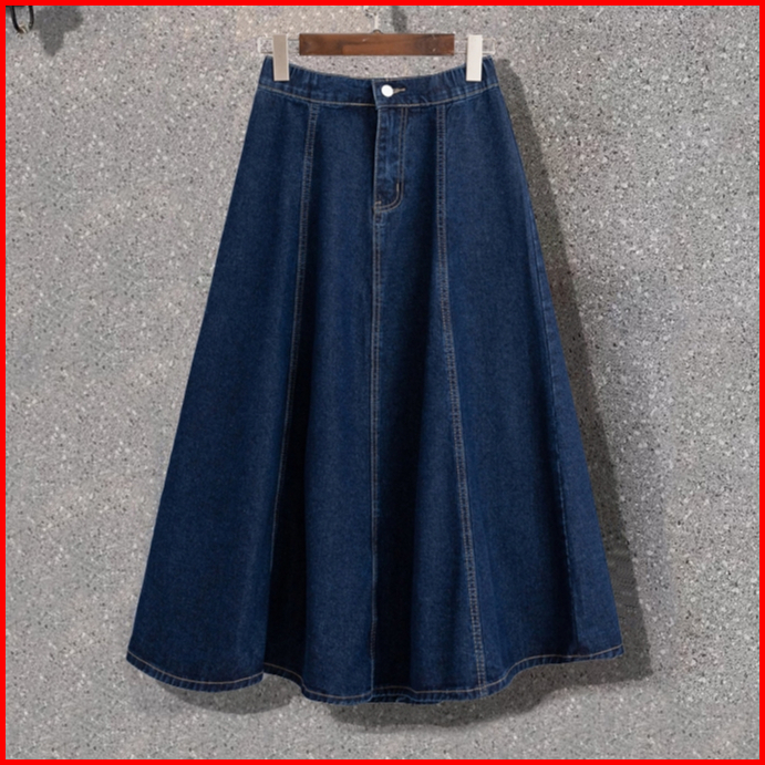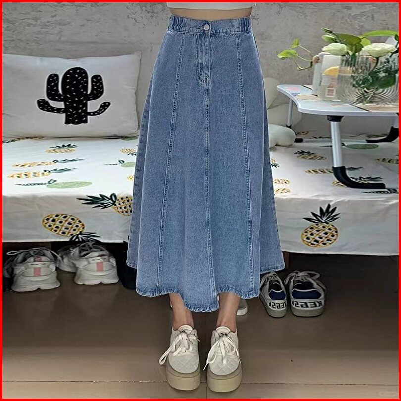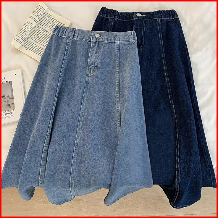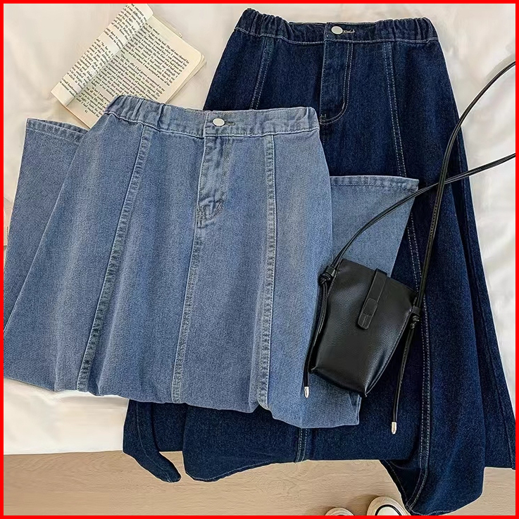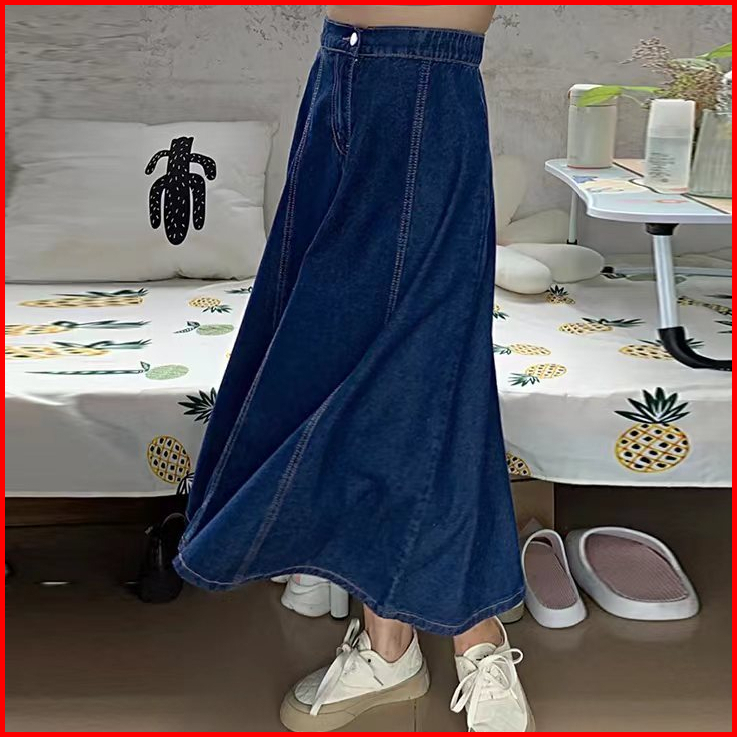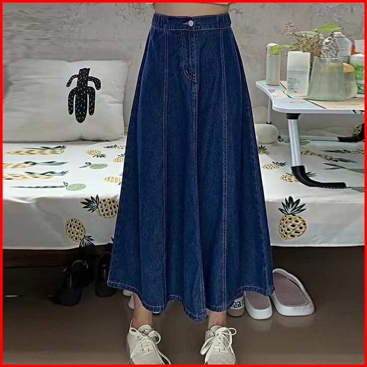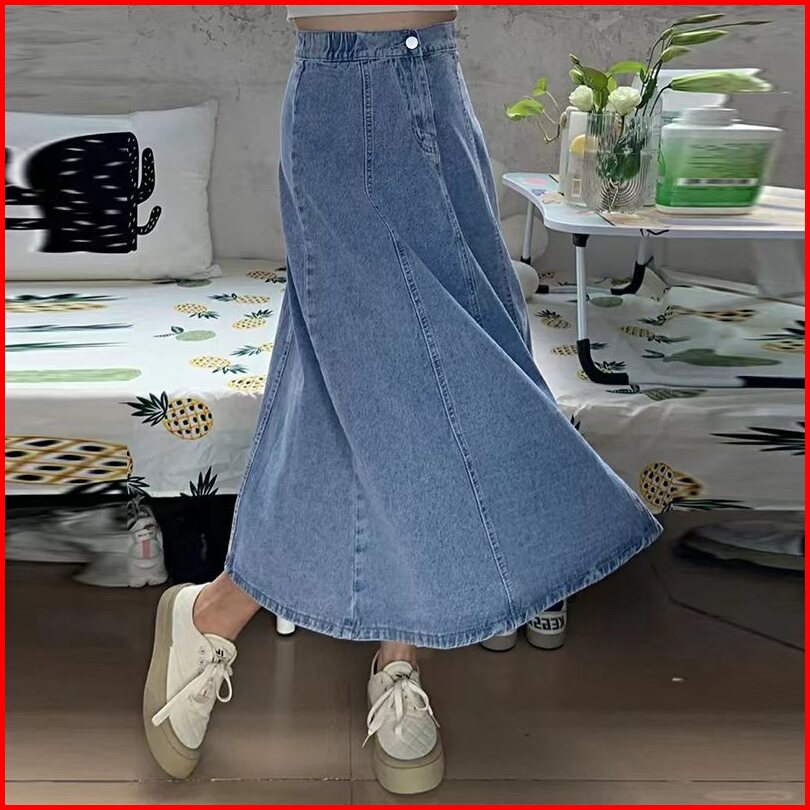 Meissi.idrok Jeans Biru Biru Tua Rok Jeans Wanita Jumbo Rok Jeans Panjang Rok Korean Style Rok Denim Lipatan Terbaru Dew
