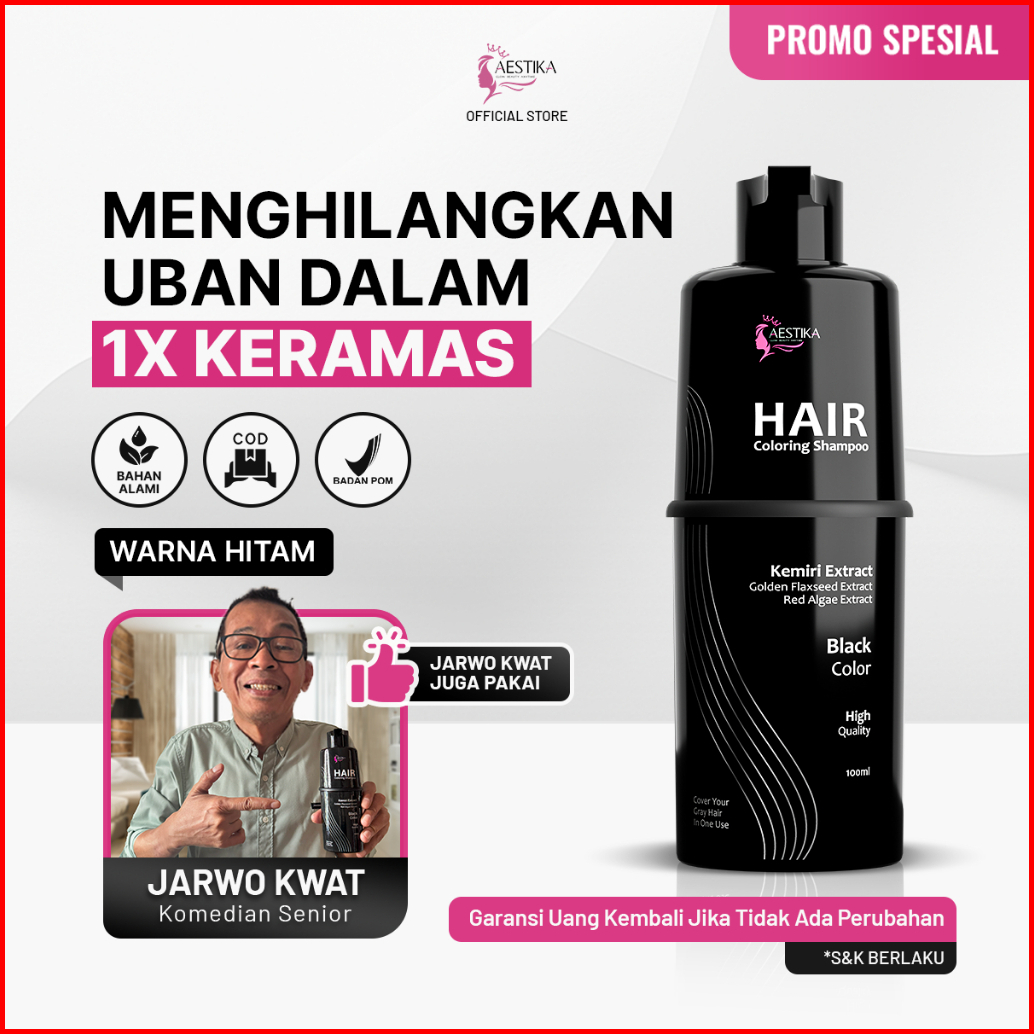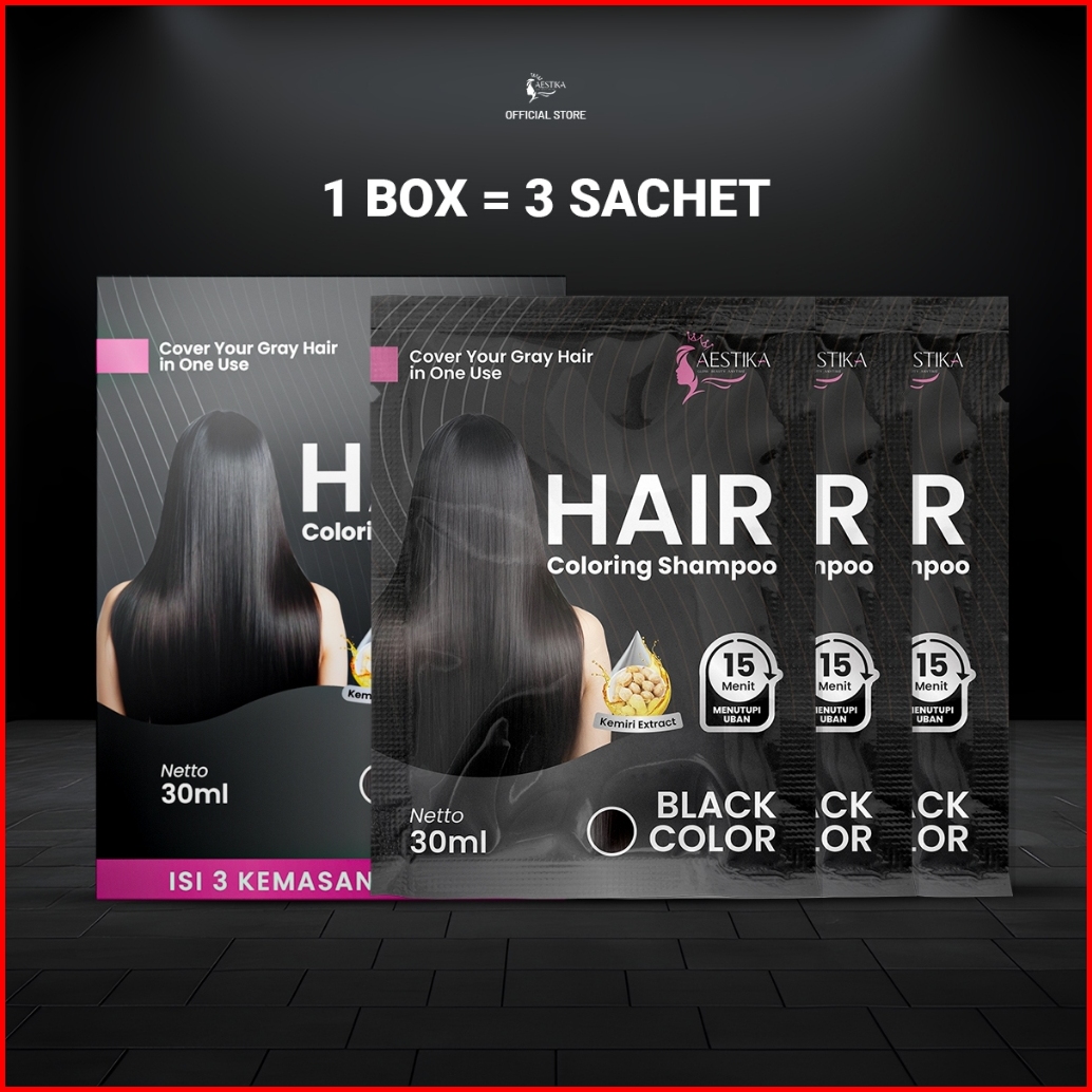 Aestika Hair Coloring Shampoo Hitam Promo Spesial - Shampo Penutup Uban Free Amonia