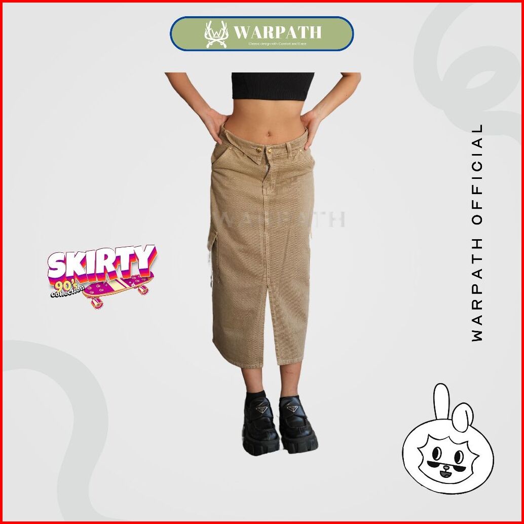 Warpath - Highwaist Rok Jeans Skirty 8696 Midi Skirt Rok Denim Cargo Wanita Khaki Non Stretch