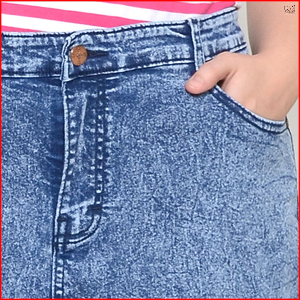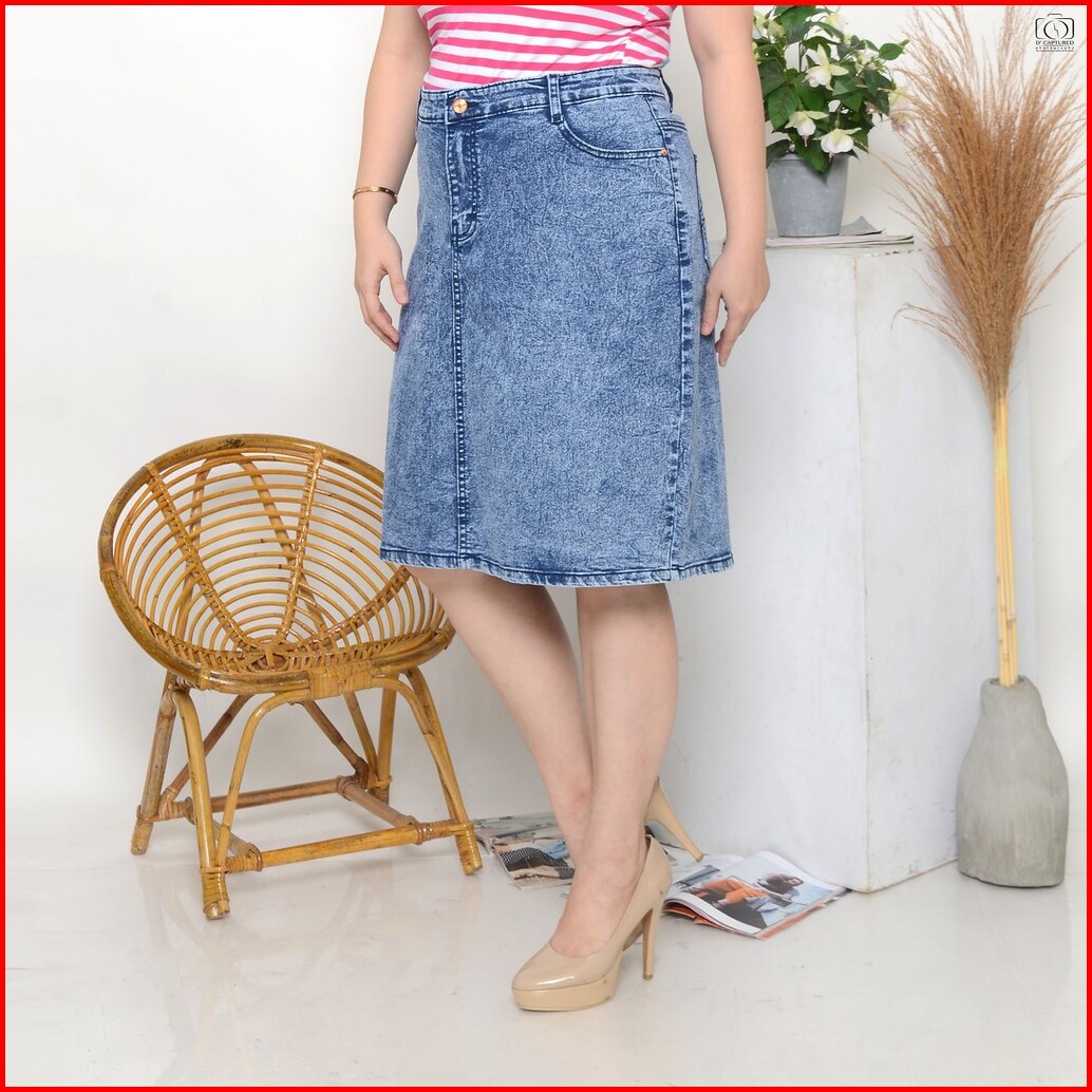Bandidas - Rok Jeans Pendek Wanita Model Rawis Bigsize Jumbo 3 Warna