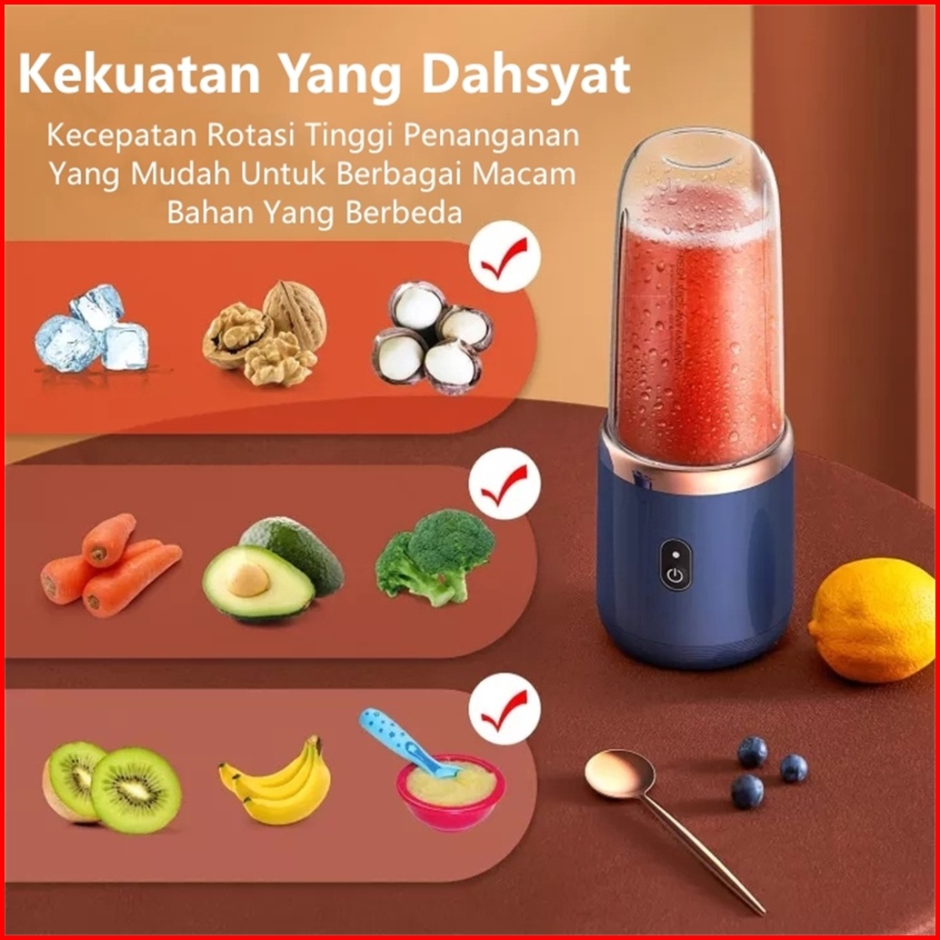 Blender Portable Mini Juicer 6 Mata Pisau Blander Jus Buah Port Charger Usb Electric Blender Kapsul