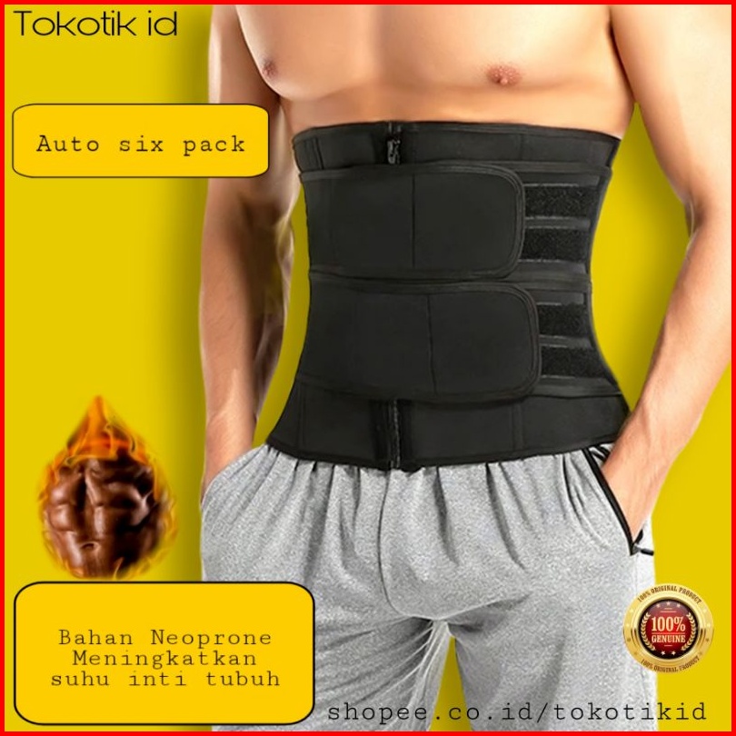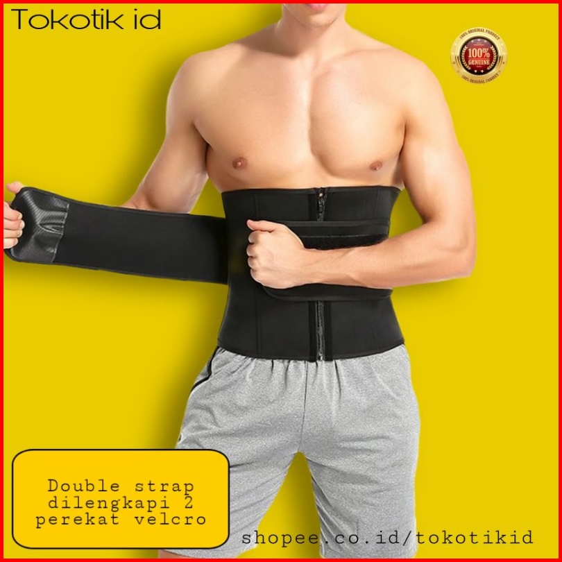 Korset Waist Trainer Zipper Double Strap Pelangsing Pengecil Perut Buncit Pria